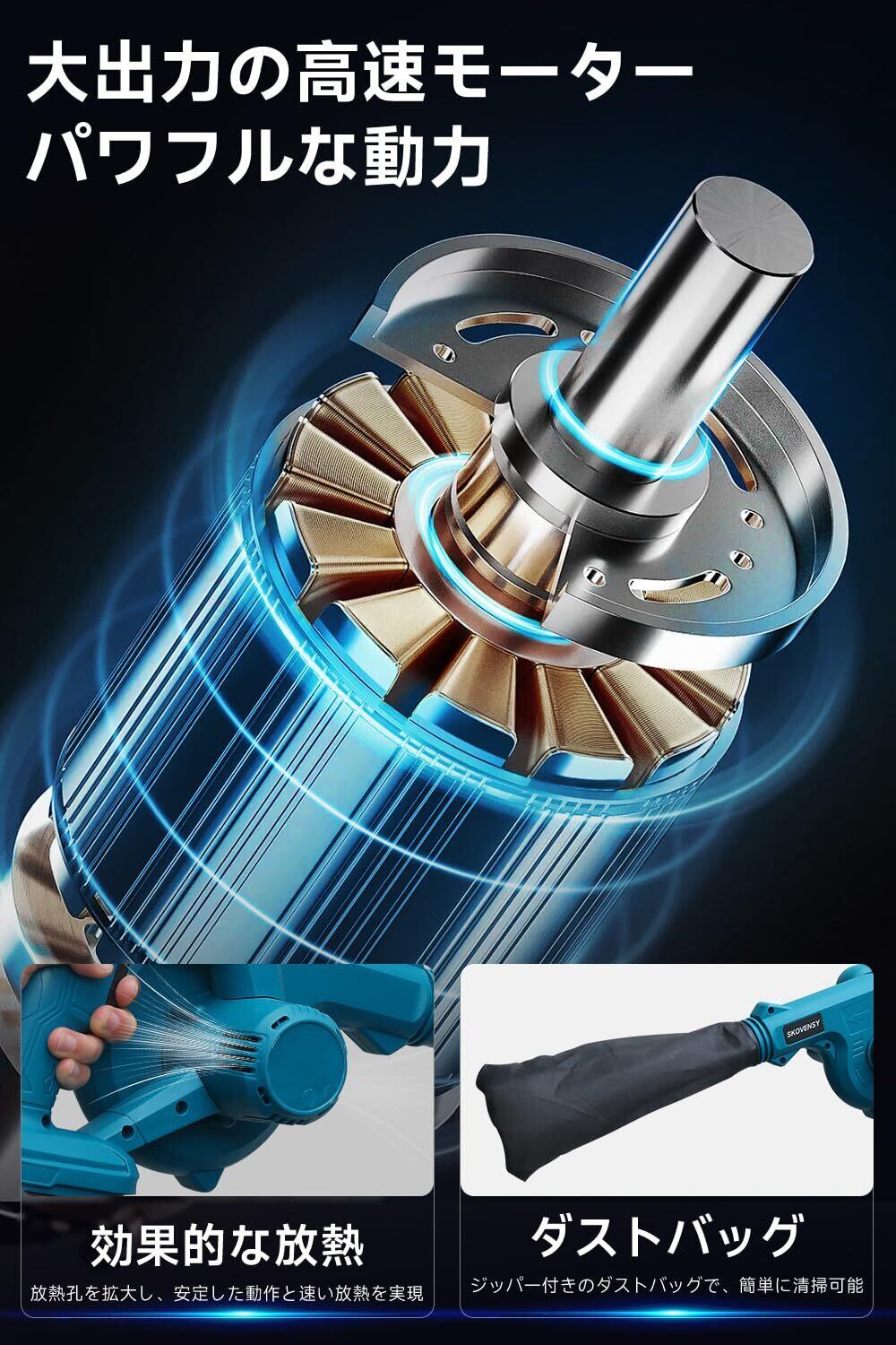 【高効率な銅製モーター】 高品質な銅製モーターを搭載したこのブロワーは、安定したパフォーマンスと信頼性を提供します。最大風量は1分間に3立方メートルに達し、強力な吹き出しを実現します。銅製モーターの高い効率性はブロワーの寿命を延ばし、持続的で信頼性のある作業を可能にします。