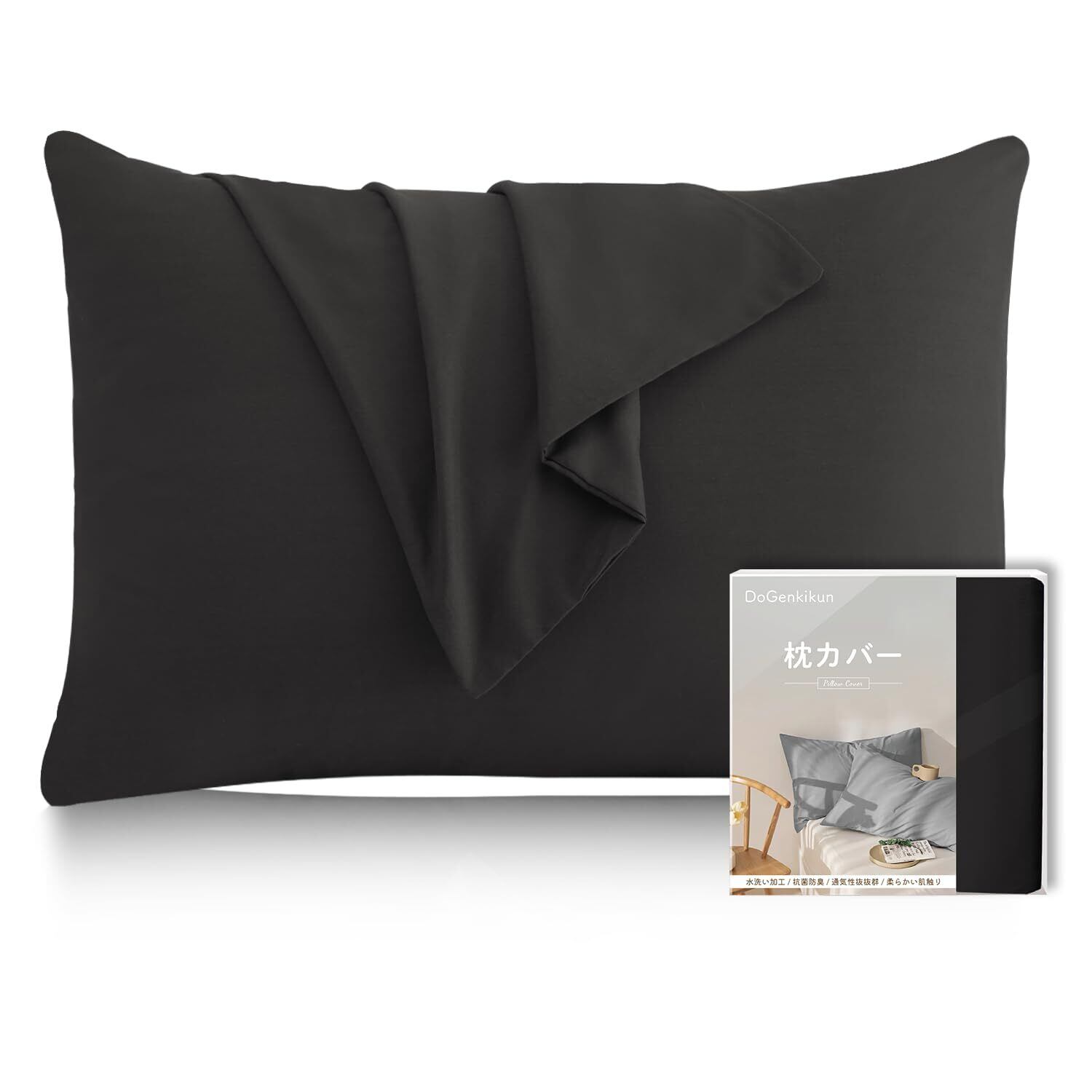 【特価セール】枕カバー 43 63 ピローケース まくらカバー 【防ダニ99.9%・自動消臭繊維・敏感肌専門】ホテル品質 封筒式 通気性 吸水速乾 丸洗いOK 抗菌防臭 防ダニ 肌に優しい 着脱簡単 1枚セット (43×63cm ブラック)