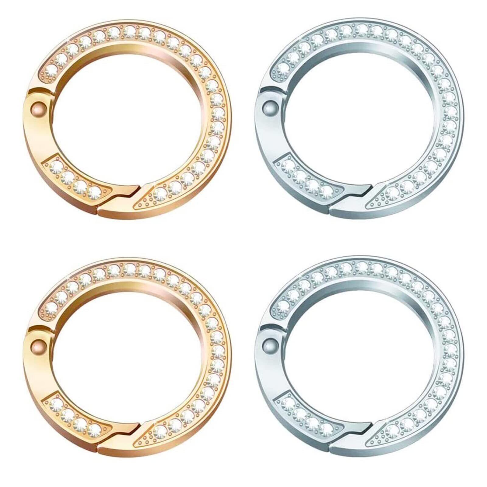 【2022最新】サムコス キーリング おしゃれ カラビナ ラインストーン キラキラ 丸型 カバン飾り 鍵飾り バッグチャーム DIY手作りアクセサリー ジュエリー作り デコキット 人気 レディース 金色+銀色 4個セット