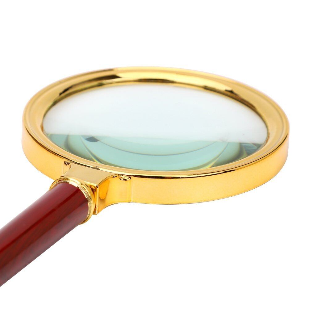 手持ちルーペ 拡大鏡 2-3倍拡大 直径90mm 手持ち虫眼鏡 高倍率 携帯便利 取り外し可能 地図 雑誌 新聞 読書用 宝石鑑定用 学生 高齢者 専門家 木製ハンドル ルーぺ 拡大鏡 記念品 プレゼント レッド