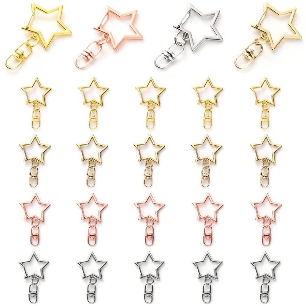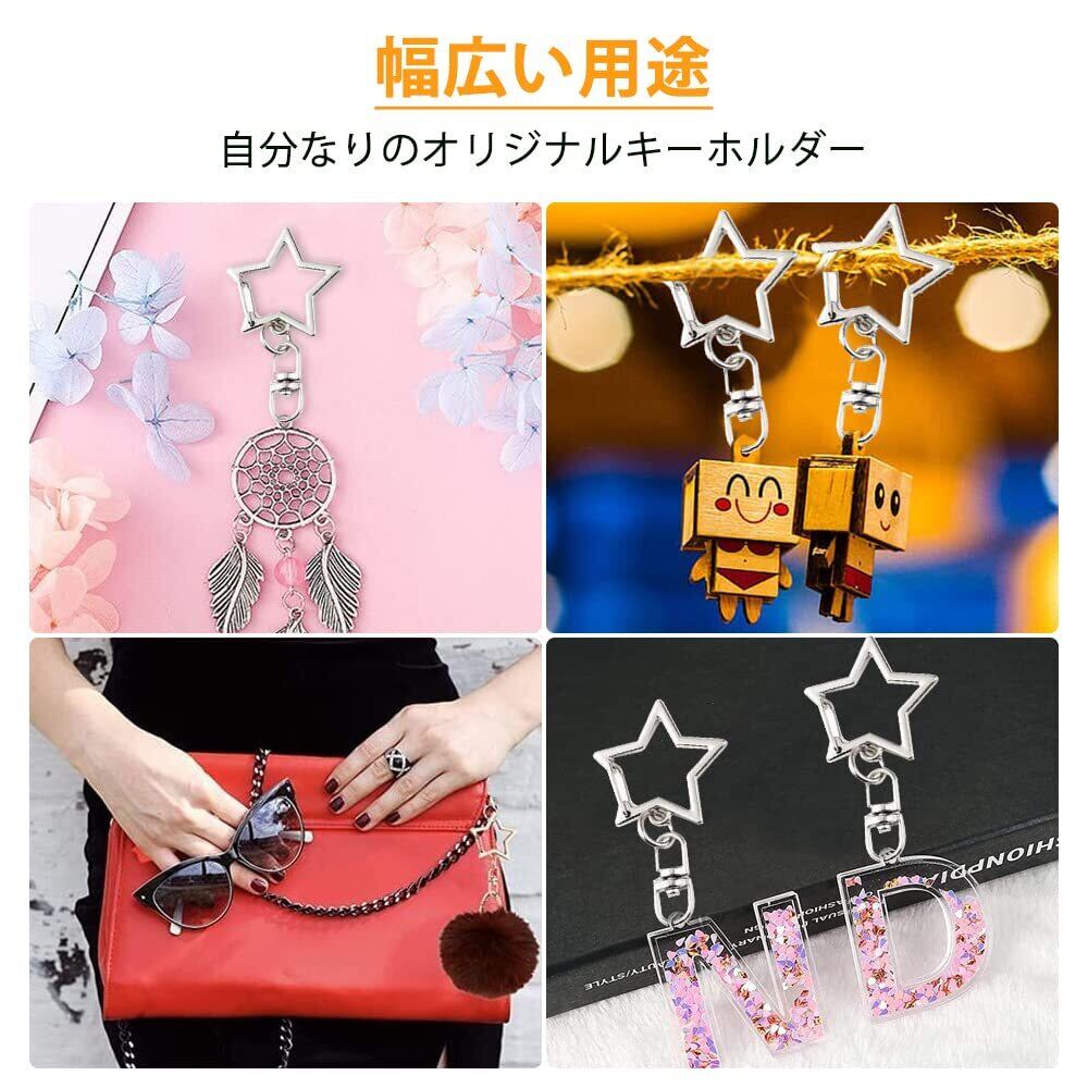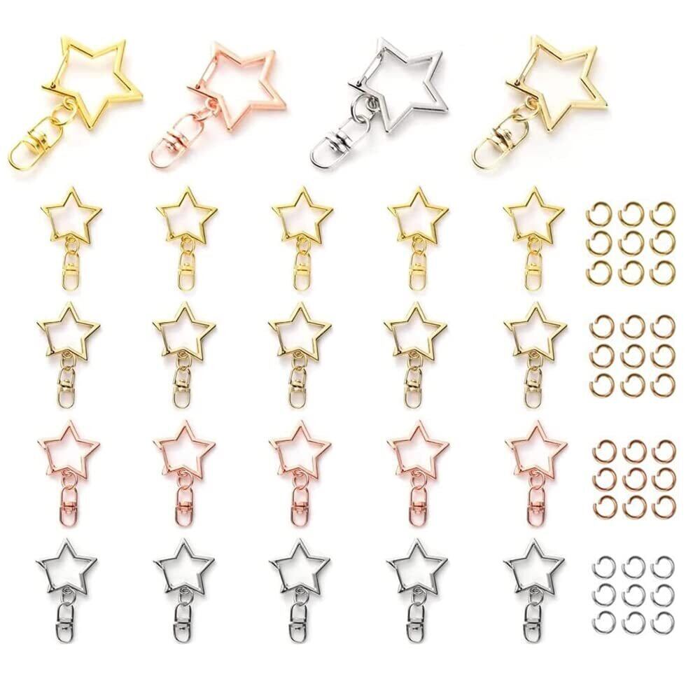 星 ナスカン キーホルダー金具 24個セット 回転カン付き 丸カン付き ワンタッチキーホルダー カワイイ DIY用パーツ 手作り 手芸用品 ハンドメイド キーリング アクセサリー 全長42mm(4色)