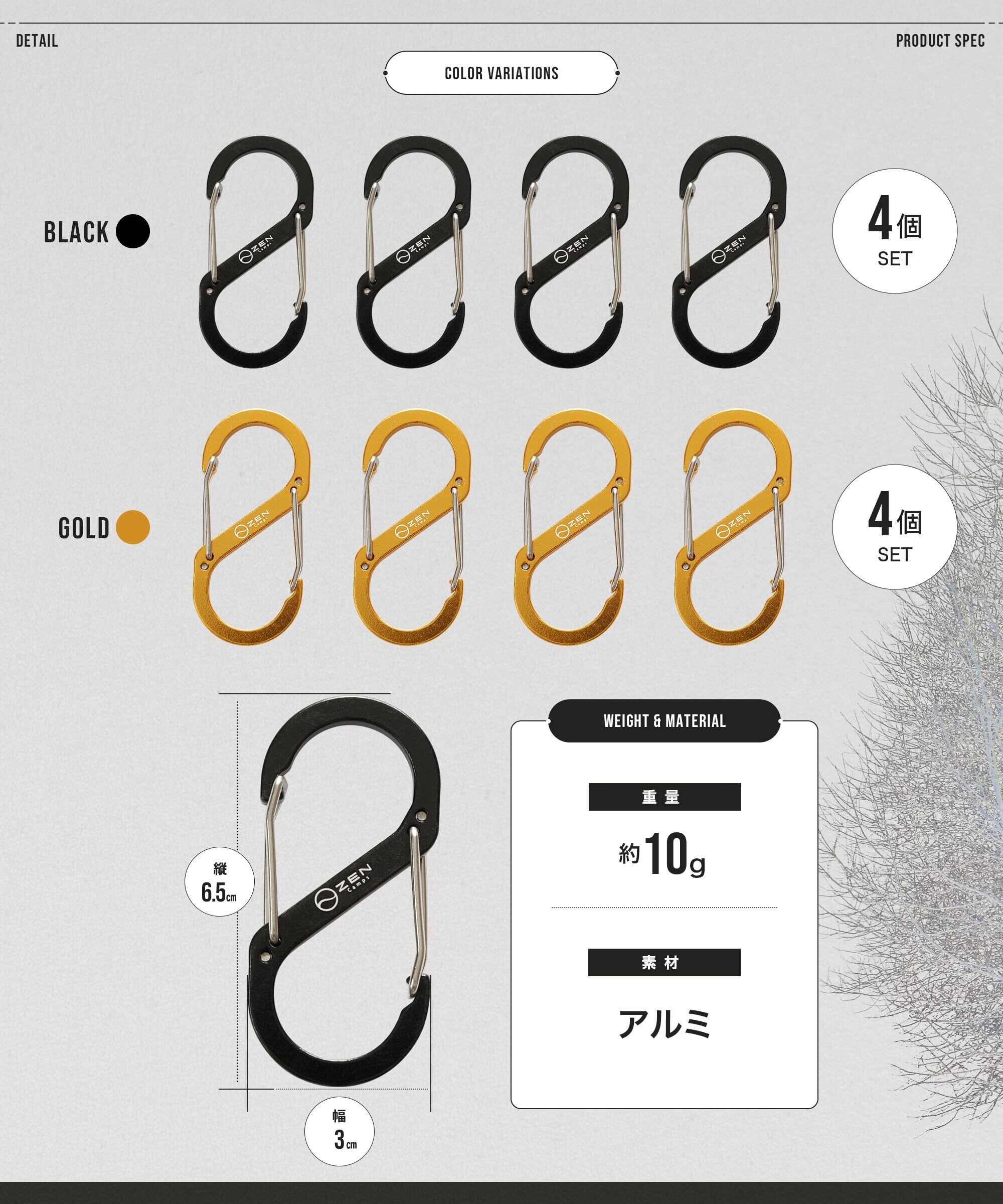 ZEN Camps カラビナ 4個セット アルミ合金 超軽量 キャンプ アウトドア