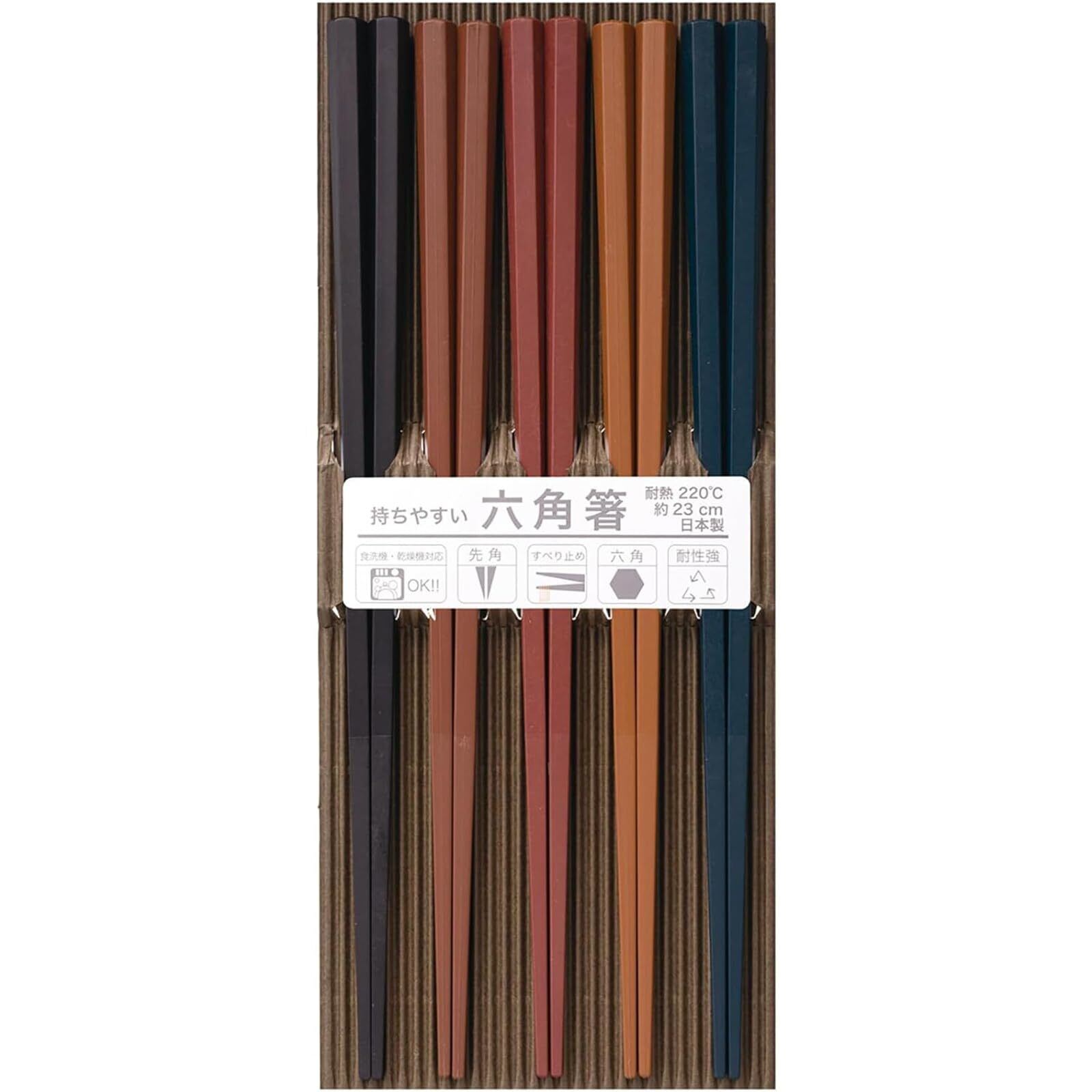 サンライフ 箸 彩り 六角PBT箸 日本製 食洗機対応 23cm 5膳セット
