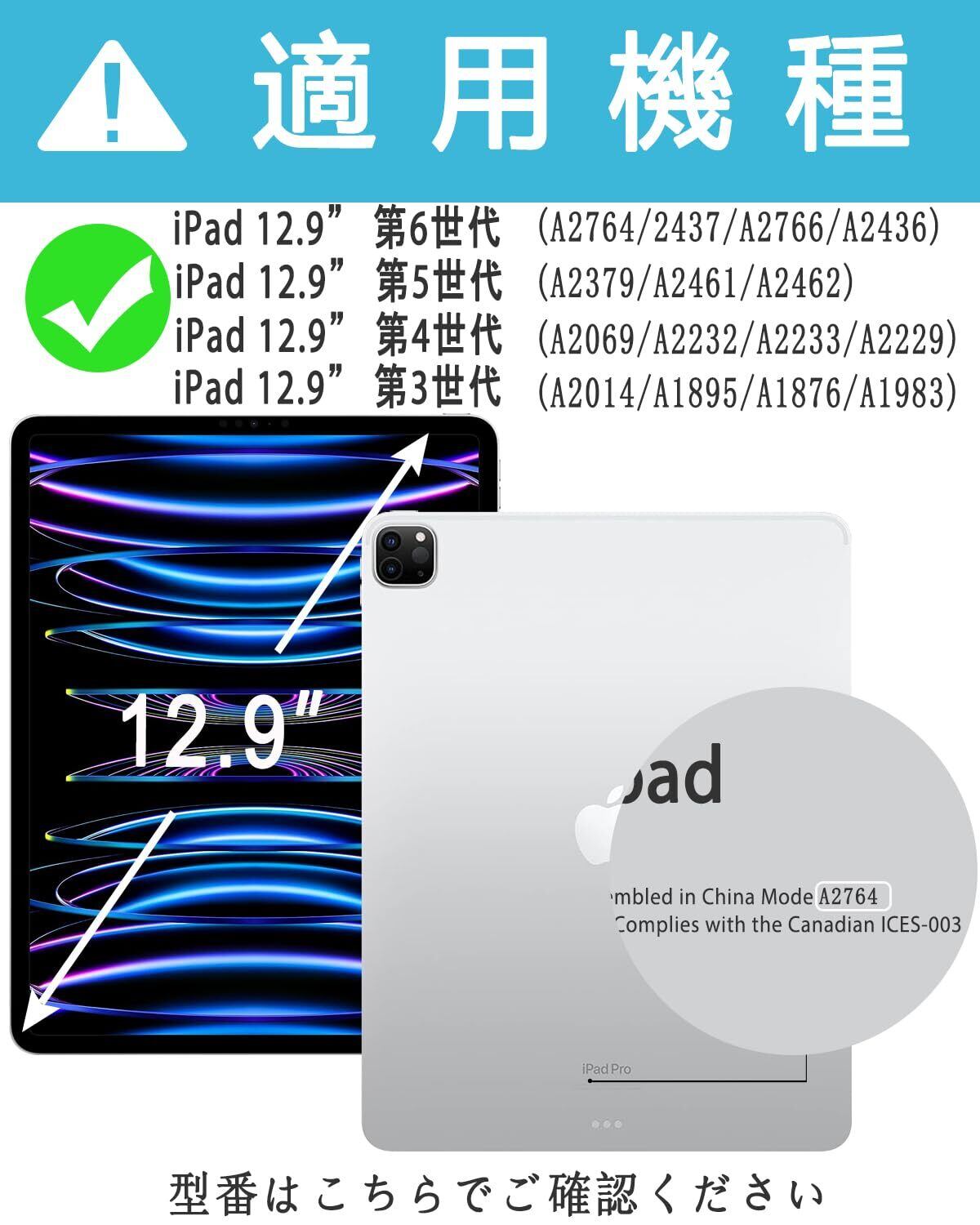 iPad Pro 12.9 インチ ケース 第3/4/5/6世代 iPad Pro 12.9 Inch カバー(2022/2021/2020/2018)専用透明 四隅 厚くする 落下防止tpu 耐衝撃 ソフト シリコン 取り外し可能 クリア 持ち運びケース ペン収納