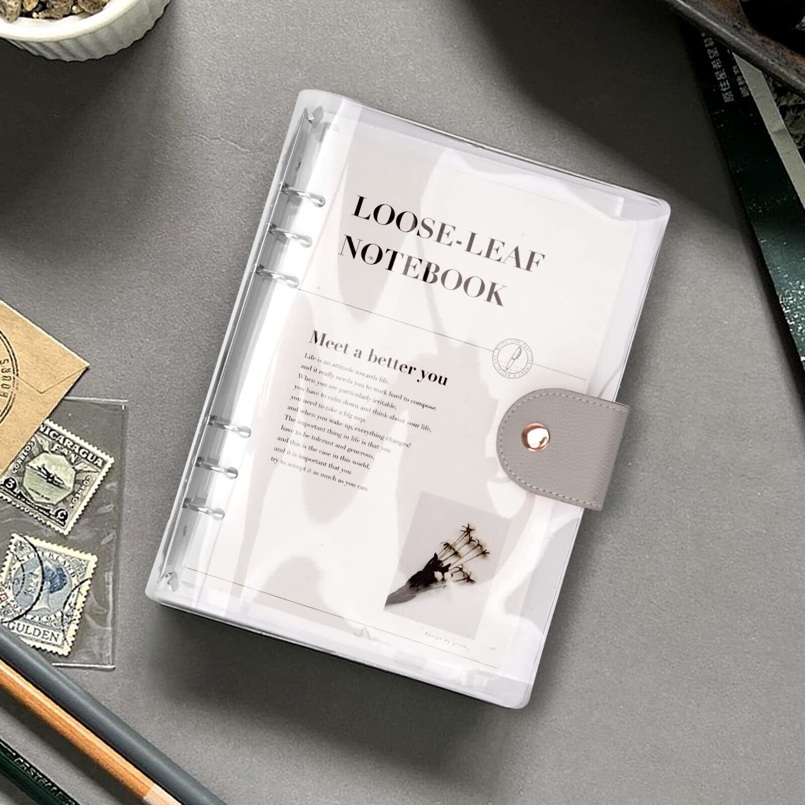 【数量限定】システム手帳 A5サイズ 6穴 ルーズリーフ PVC 透明バインダー シンプル手帳 柔らかい ボダン付き 横罫 ノート クリア素材 スケジュール帳 メモ帳 オフィス用品