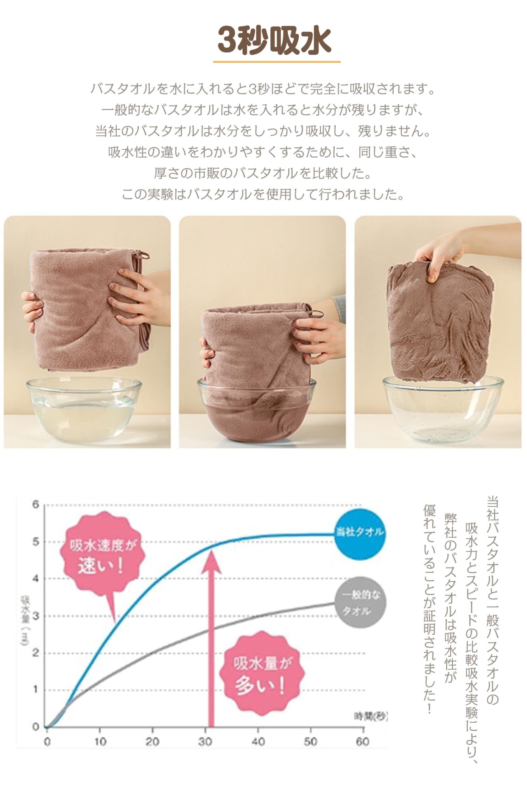 【バスタオル3枚 セット】サイズ:約70×140cm、重量:約300g(1枚あたり)出張、旅行、入浴、ご家族皆さんが満足できて、様々な場合で活躍します。