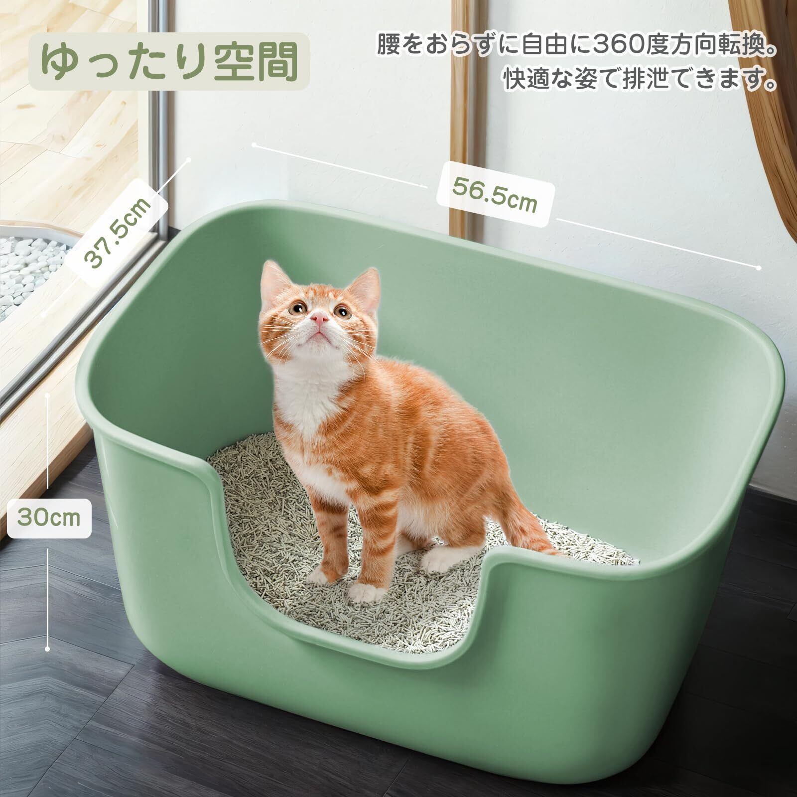 太めの猫でもゆったり使用できる大型猫トイレです。サイズ(約):幅56.5×奥37.5×高30cm 猫が出入りしやすいオープンタイプの猫トイレです