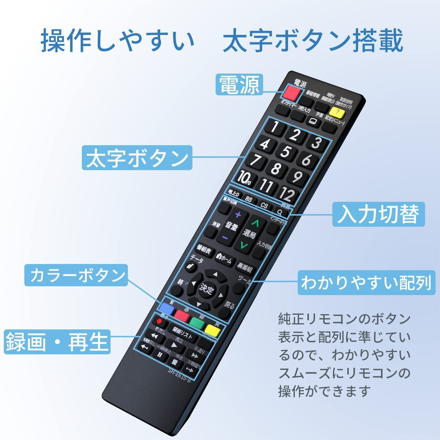 SHARP アクオス用テレビリモコン 【設定済み】 シャープ 機種対応 アクオス液晶テレビ汎用 AQUOS代用リモコン 軽量化リモコン 太字ボタン NIYAMA ニヤマ