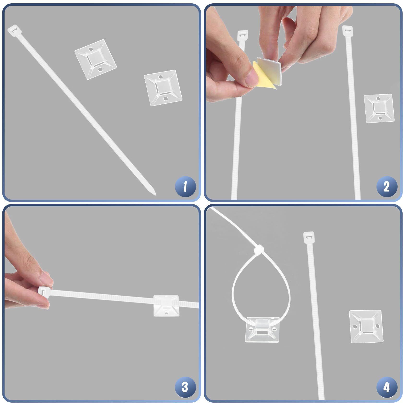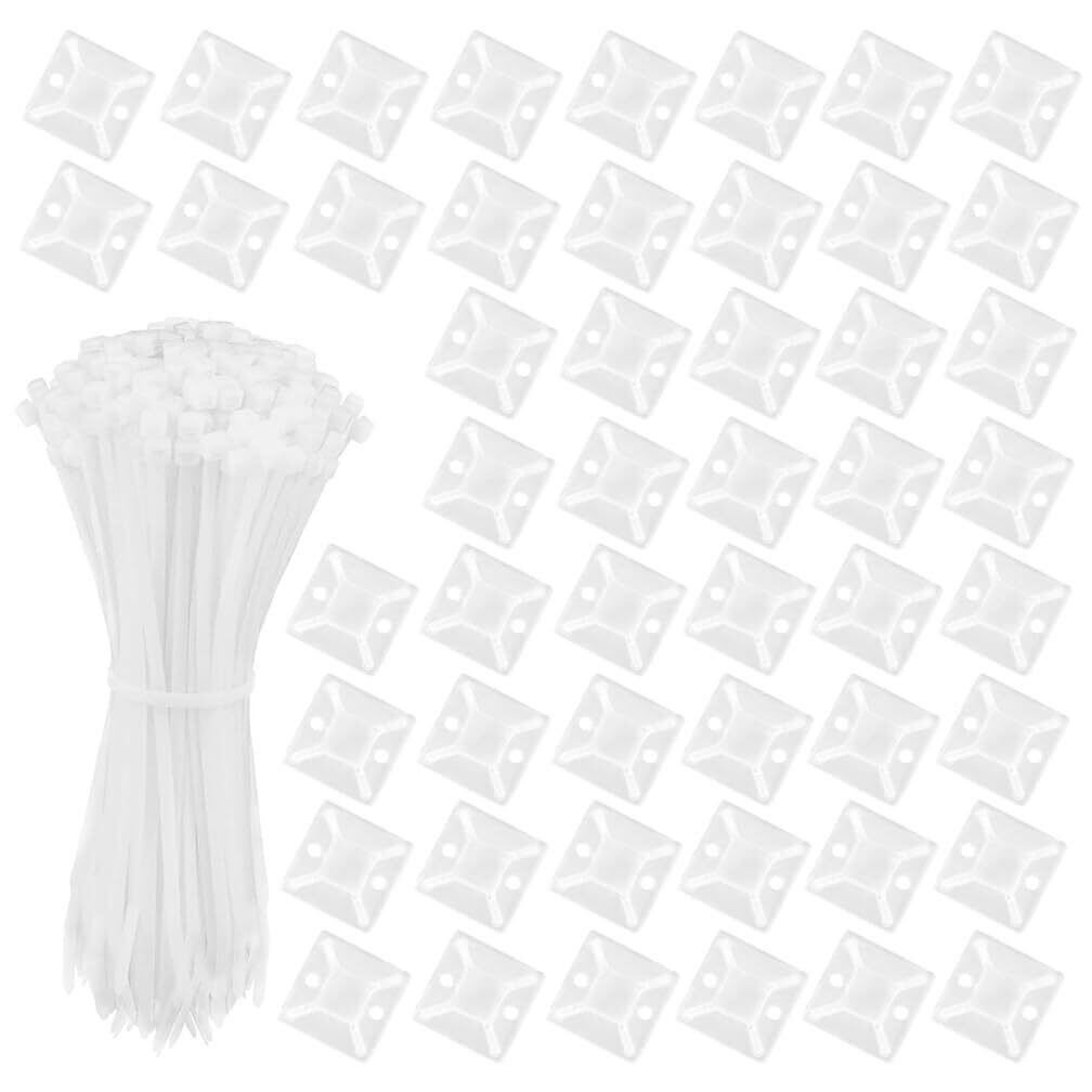 【セット】パッケージ内容:透明:1.8 cm x 1.8 cmのマウントベース*50個、ホワイト:2.5 x 150 mmナイロン製パンドウイット*50本。結束バンドとマウントベースを組み合わせて使用すれば、簡単にコードをきれいに整理できます。