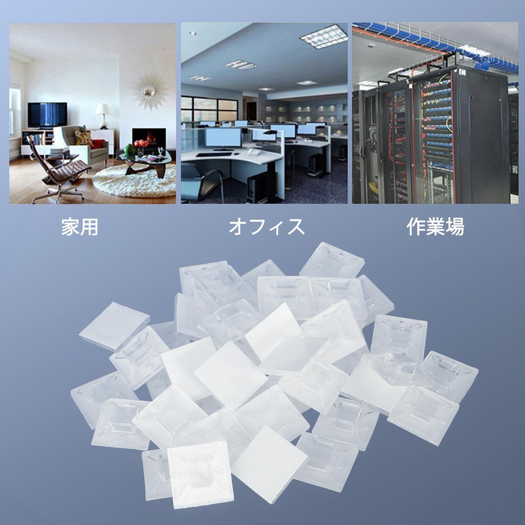 【在庫処分】VIAKY ケーブルタイ マウントベース ナイロン結束バンド 50個 セット 18mm 透明+ホワイト ナイロンケーブルストラップ 強力粘着テープ付き 配線 固定具 ケーブル コード 収納 整理 耐熱 耐候性