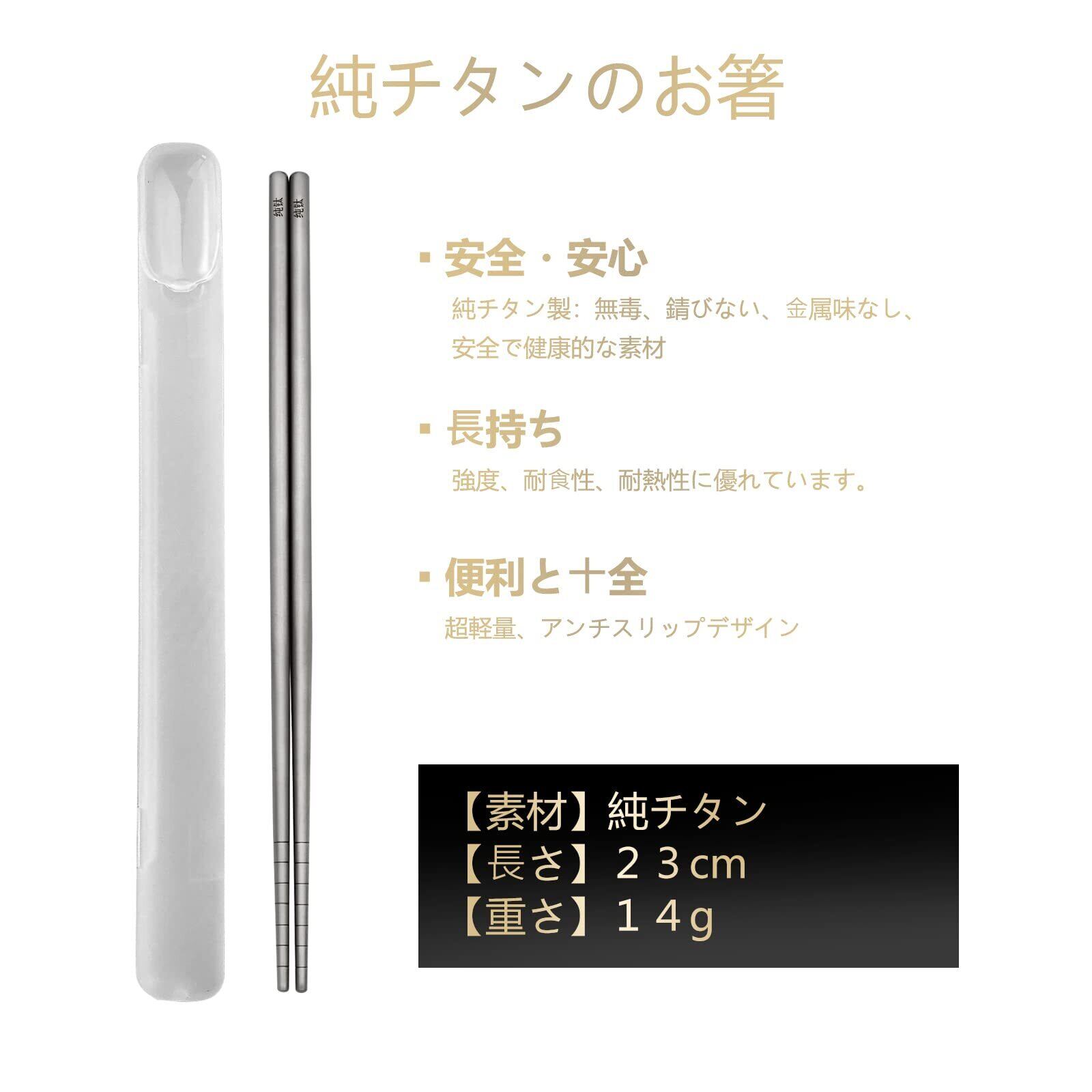 チタン製 純チタン角箸 滑り止め 無塗装 中空構造 軽さ 耐久性 出張で使う 収納ケース付き 携帯簡易 超軽量 寿司箸 麺箸 携帯箸 キャンプ 23cm 1膳