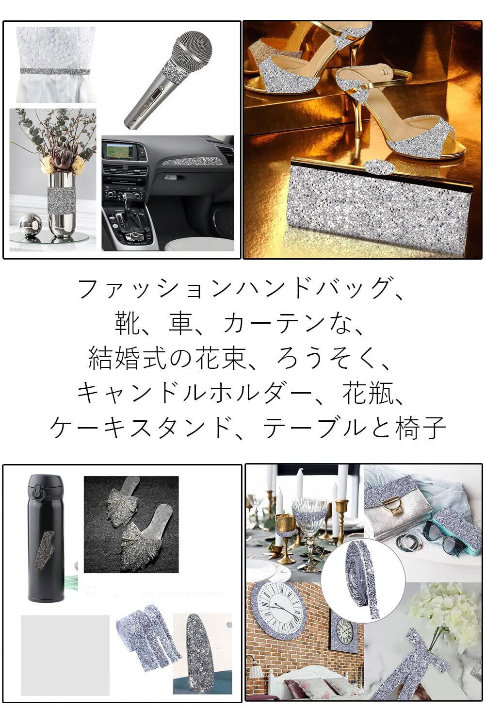 ◇【カラー&サイズ】クリスタルドリルリボン巻きの長さは1ヤード/約91cm、幅は2cmで。カラー:シルバー。このダイヤモンドリボンは非常に柔軟で、曲げることができ、簡単にトリミングしたり、任意のサイズでDIYしたりできます。