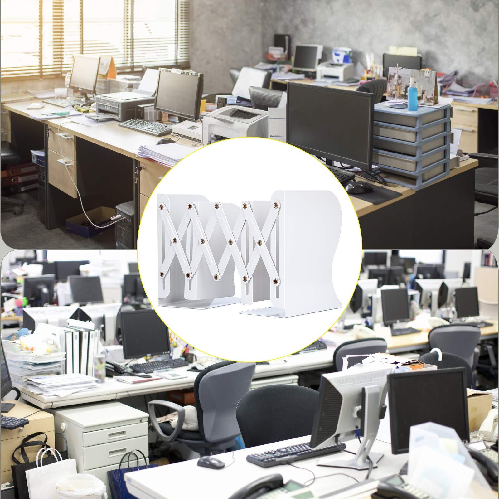 【人気商品】本立て 伸縮自在 ブックエンド 倒れない 金属製 卓上本棚 仕切りスタンド 雑誌 書類 新聞ファイル ひきこみ式の棚 事務用品 文房具 学習 書斎 子供部屋 オフィス 多機能 おしゃれ ホワイト