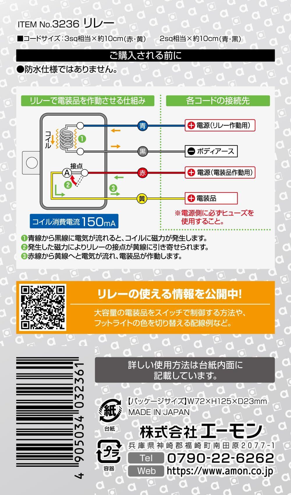 【新春セール】エーモン(amon) リレー 4線(4極) DC12V・360W(30A) 3236