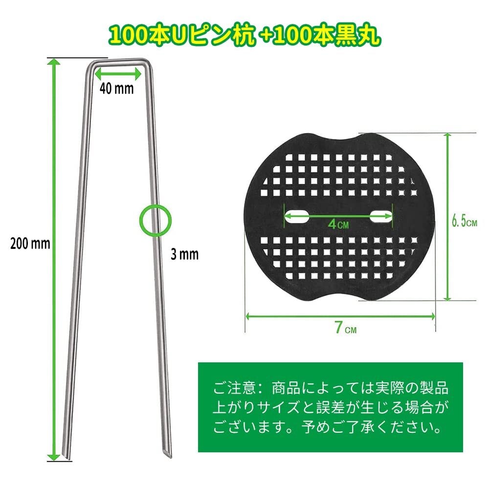 【人気商品】AMEITECH Uピン杭 20cm 黒丸付 防草シート幅4cm 固定用 人工芝 おさえピン U字型ピン 押さえピン コ型ピン 防草シート 固定用 農業用ネット マルチ (100本ピン+100枚黒丸)