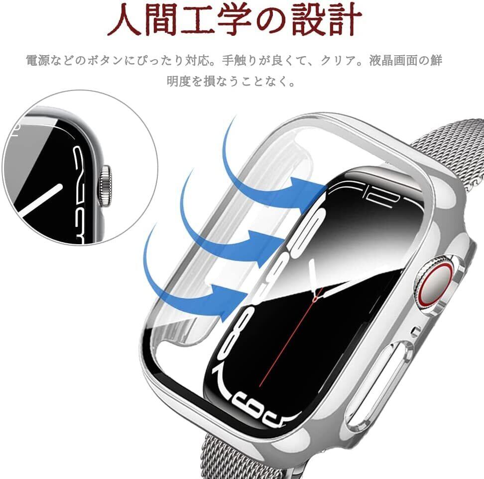 【新春セール】for Apple Watch ケース 2023 Apple Watch Series 9/8/7 41mm 用 一体型 apple watch 用 カバー アップルウォッチ ケース AppleWatch 9/8/7 41mm対応 日本旭硝子材 二重構造 アップルウォッチ ケース 全面保護 耐衝撃 装着簡単 シルバー