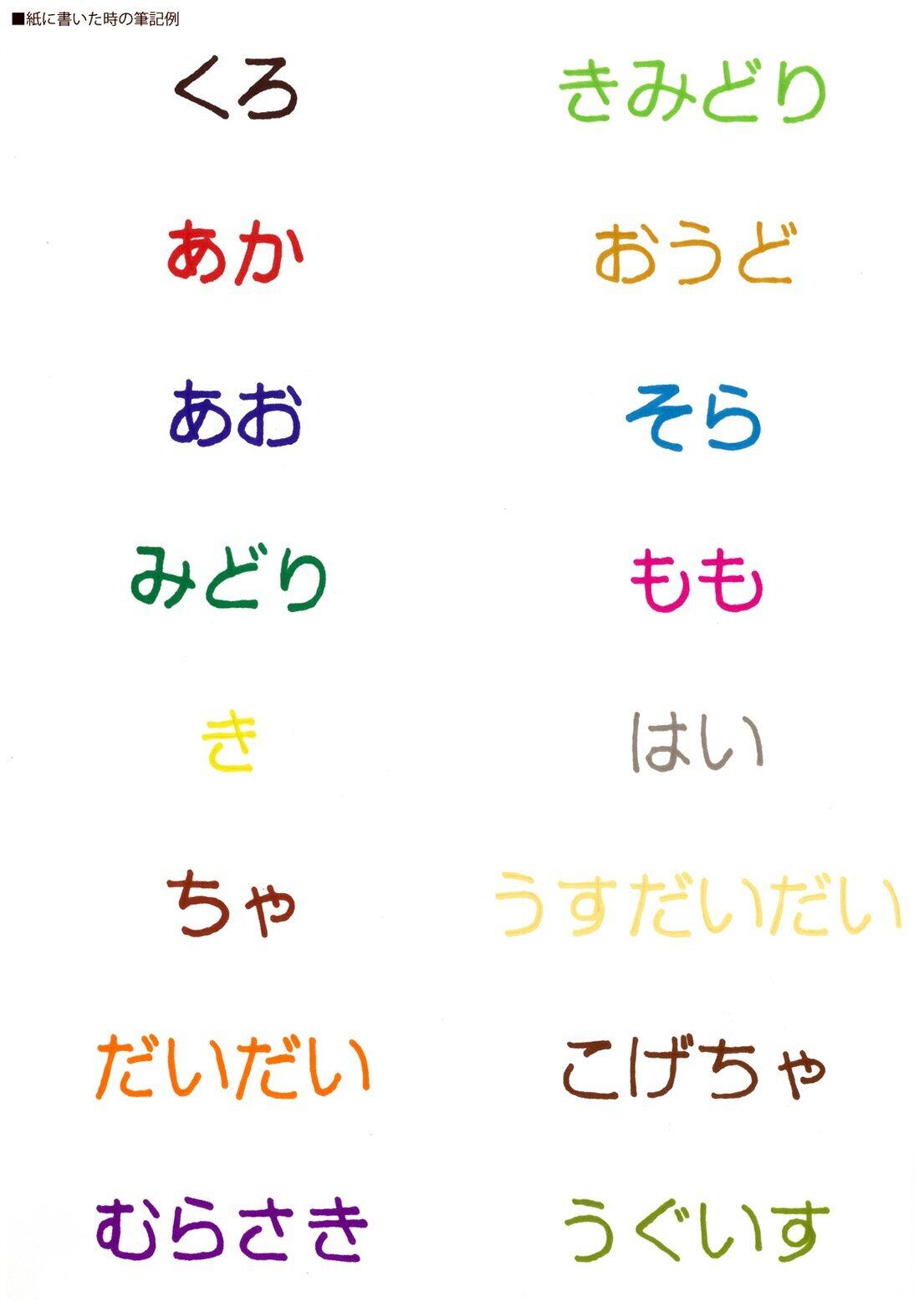12色=8色(黒/赤/青/緑/黄/茶/橙/紫)+黄緑/黄土/空/桃