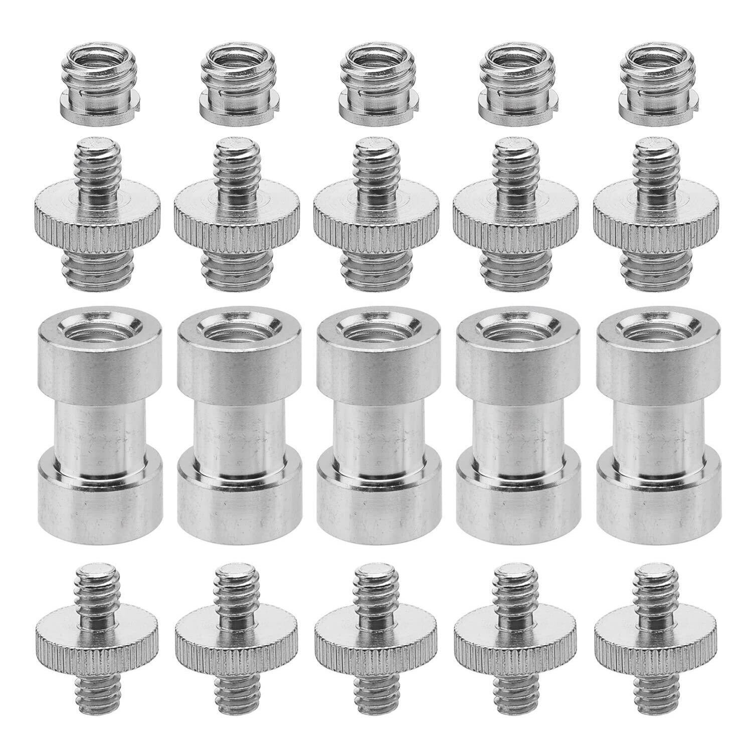カメラ ネジ 1/4〜3/8インチ カメラネジ変換 20点セット ダブルヘッド スピゴット ライトスタンド 三脚 一脚 一眼レフ ボールヘッド に組立 マウント スクリュー アダプタ