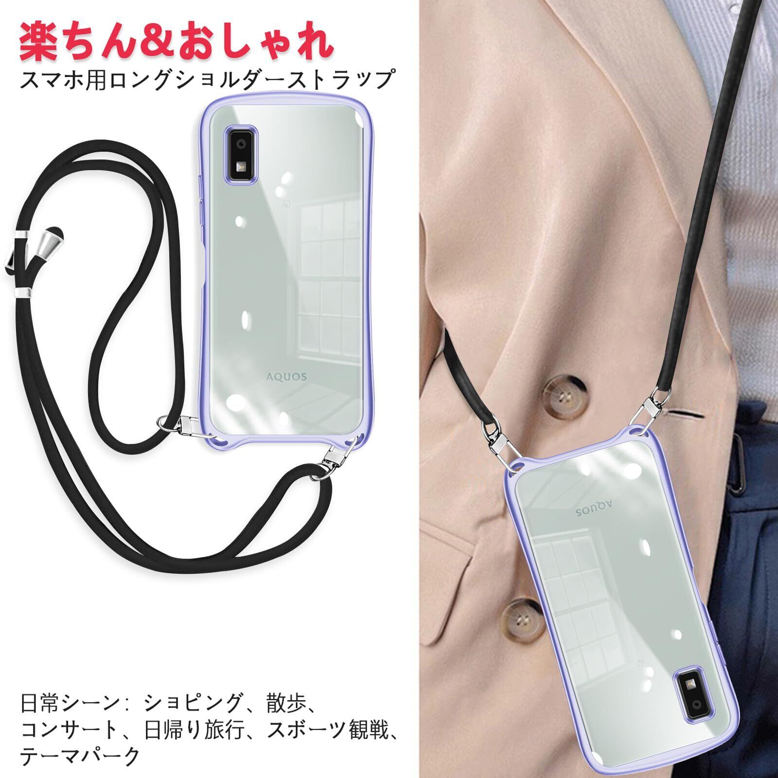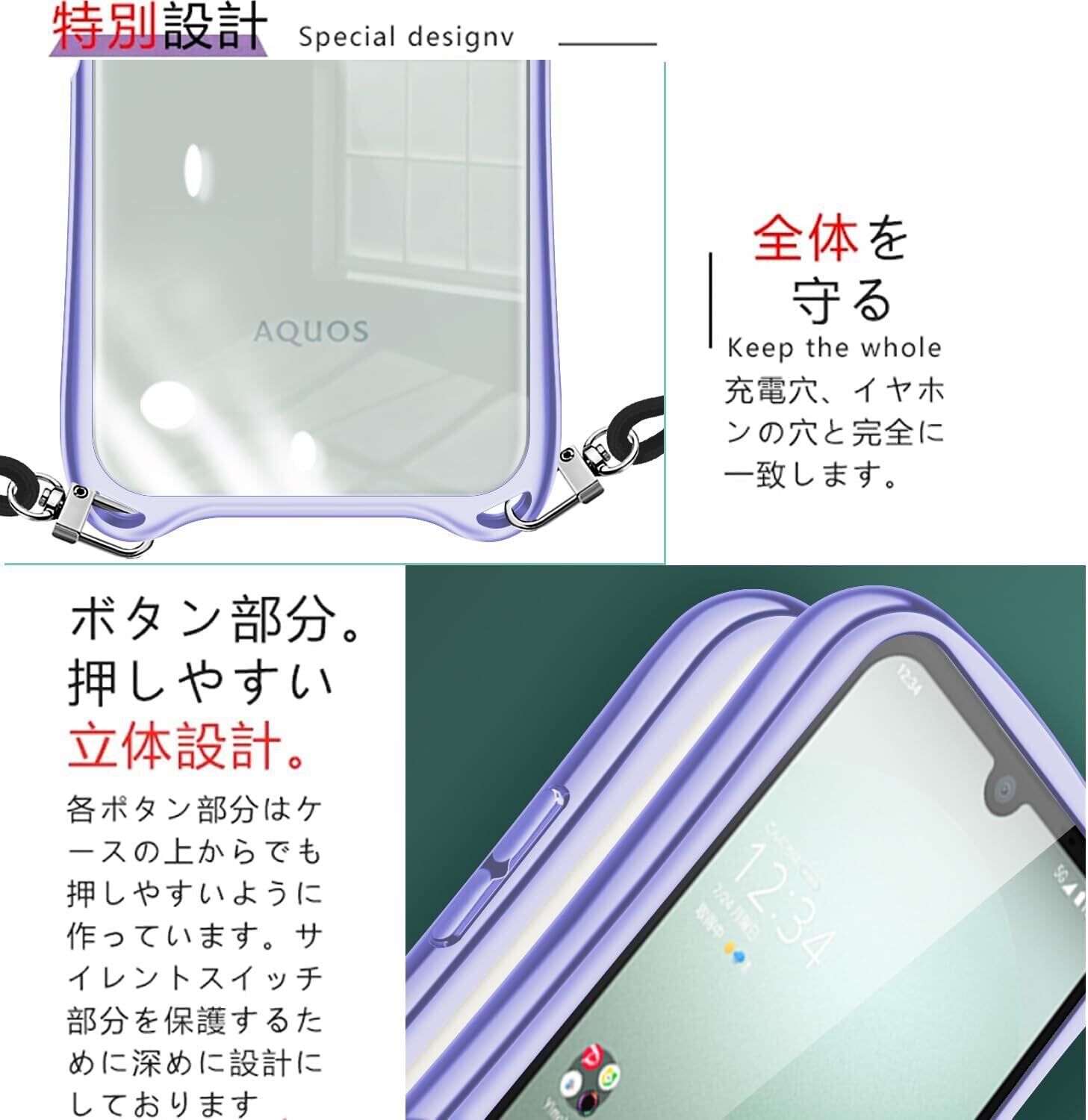 AQUOS Wish 3 ケース ショルダー クリア wish3 スマホケース アクオス ウィッシュ3 SH-53D カバー 耐衝撃 肩掛け 首掛け 可愛い かわいい 韓国 透明 TPU 長さ調整可能 取り外し可能(ライトパープル)