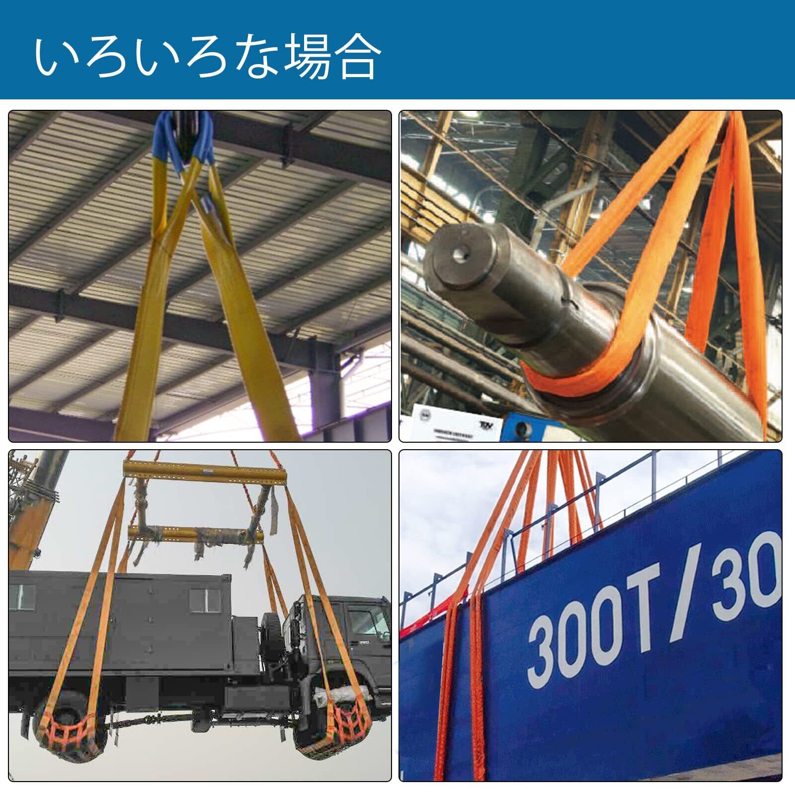 JiiinMiiin スリングベルト 使用荷重2000kg 長さ1M 幅50mm ポリエステル製 安全ロープ 荷吊りベルト 牽引工具 道具 園芸 出荷 引越し【2本セット】