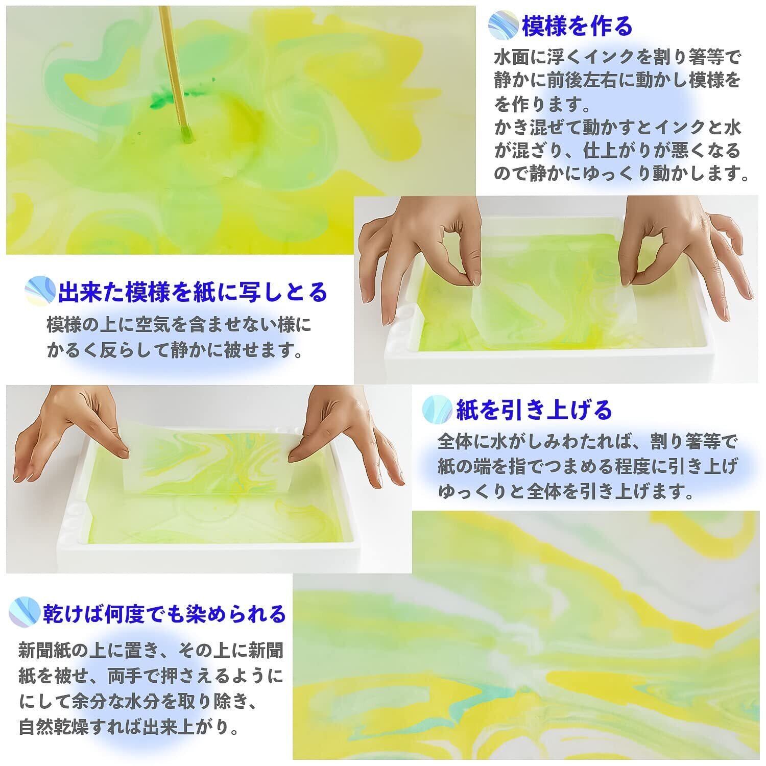 【マーブリング】ご家庭にある身近な道具で「墨流し」を楽しめる。紙、布、木、皮等吸水性の材質にはすべてマーブリングできる。