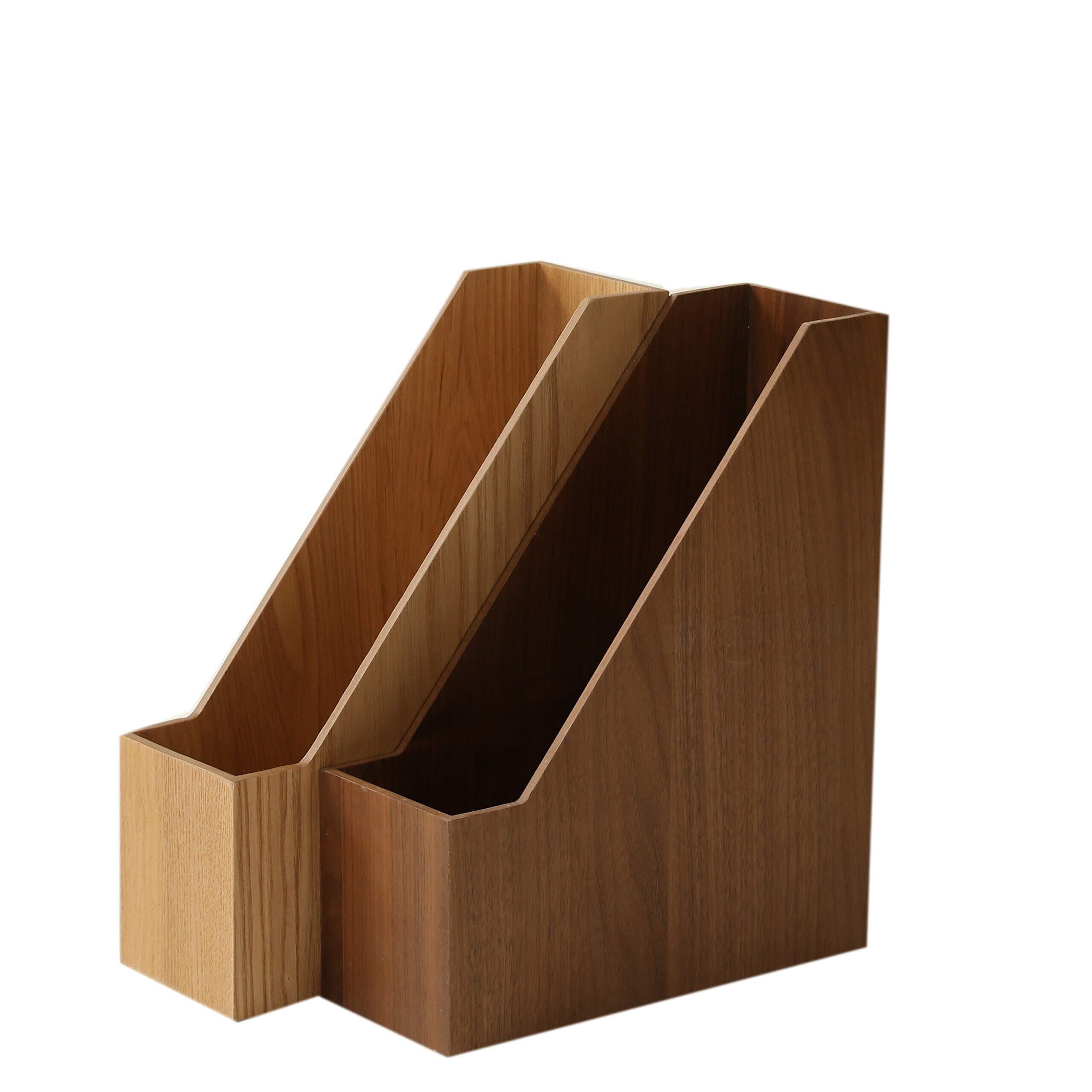 本 収納 ブックスタンド 本立て 木製 卓上収納 雑誌/新聞/書類入 オフィス 卓上本棚 デスク 小物入れ (ライトブラウン)
