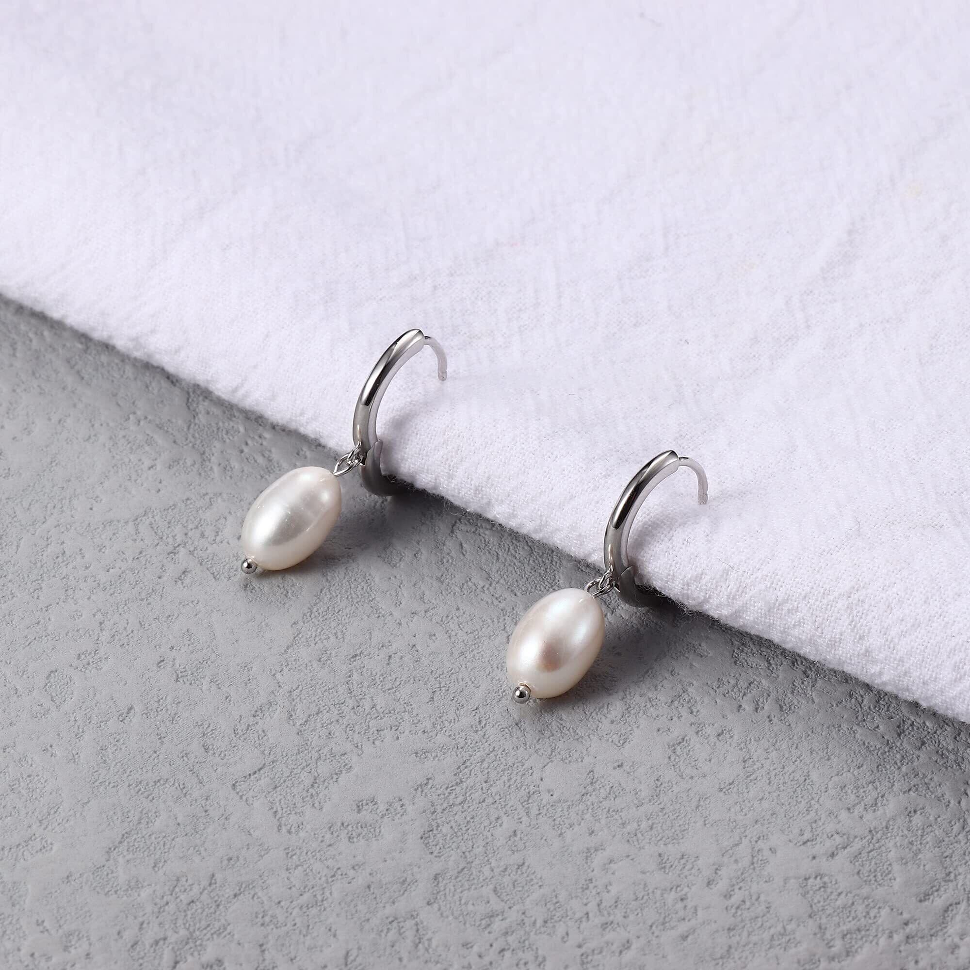 【高品質素材】 シルバー925のフープピアスに淡水パールのダングル。 ニッケルフリー、鉛フリー、カドミウムフリーで、敏感な耳にも優しいクラシックな女性用パールイヤリングです。9mmのホワイト淡水パールを使用した最高品質のピアスです。
