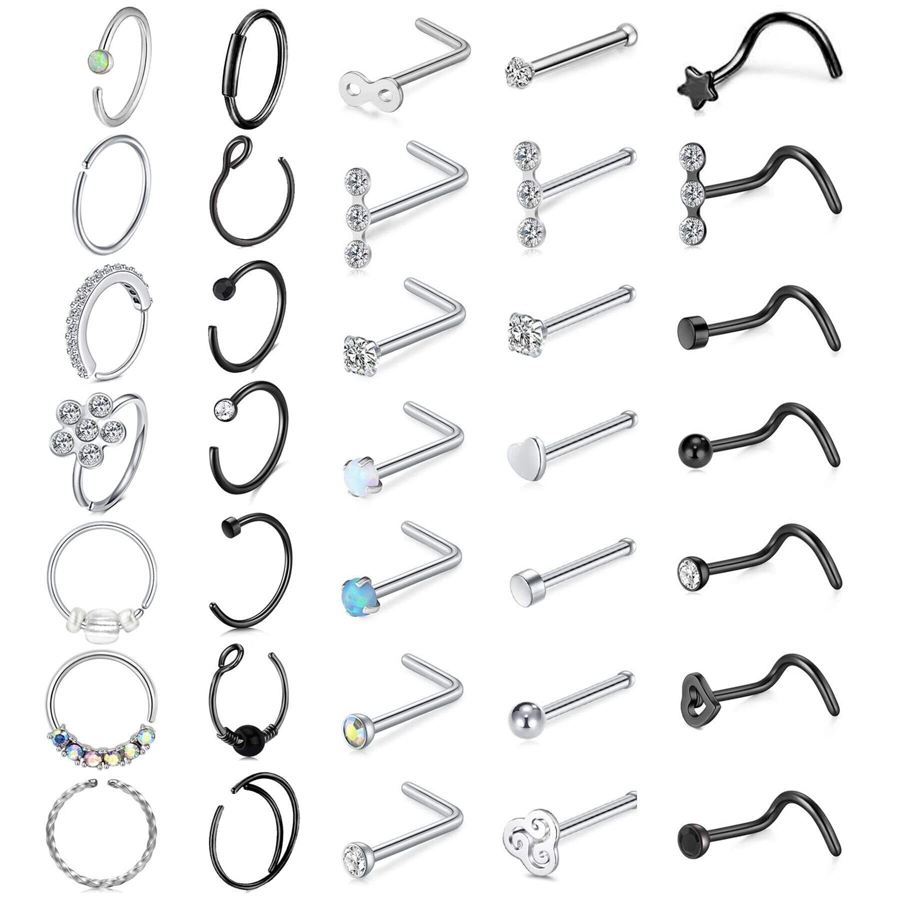 [Aroncent] ボディピアス 20G 鼻ピアス L 鼻リング 軟骨ピアス ステンレス フェイクピアス メンズ レディース ファッション アクセサリー (36点セット)