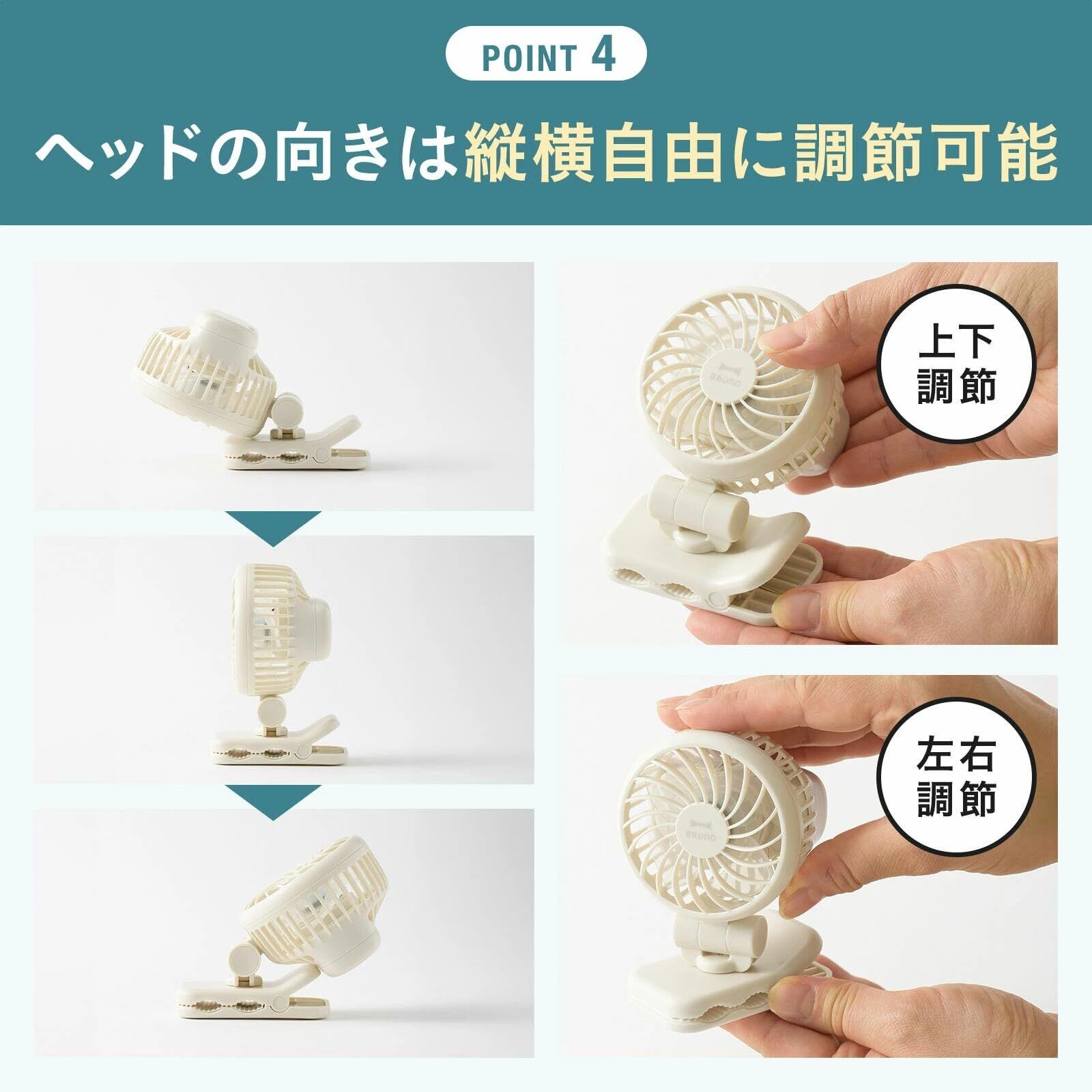 BRUNO ブルーノ ハンディファン 扇風機 小型 クリップ ポータブル ミニファン 軽量 アイボリー 白 BDE066-IV