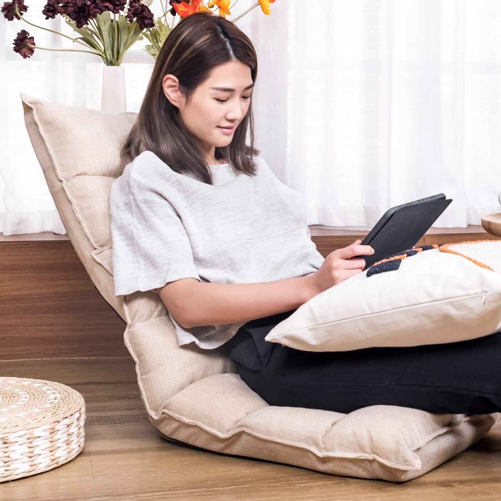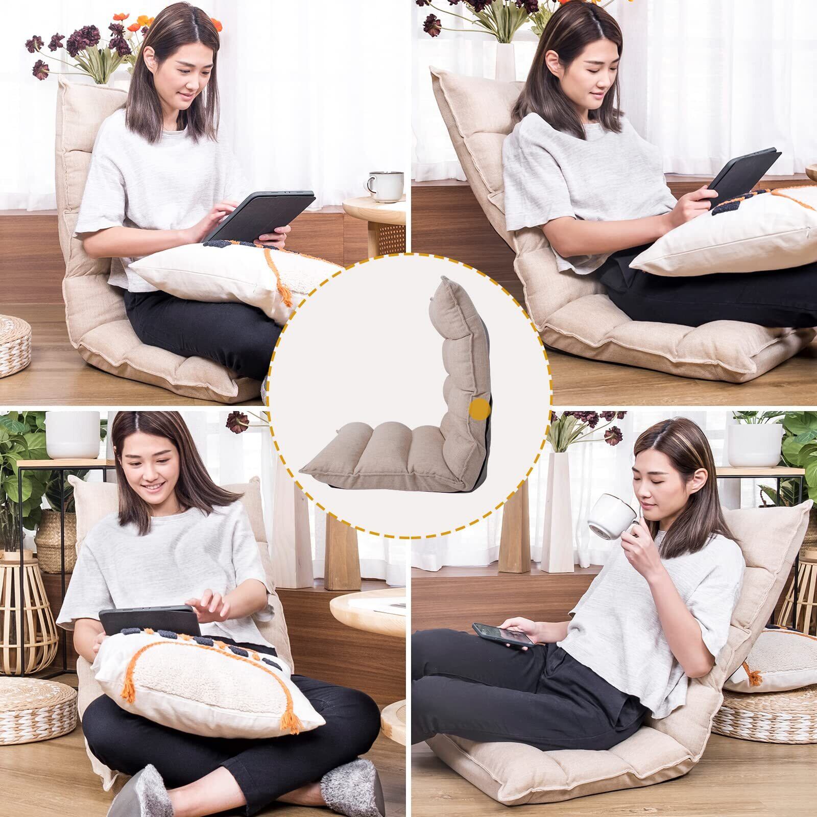WAVV 座椅子 首リクライニング座イス 1人掛け フロアチェア 折り畳み 省スペース 背面6段階調整 座椅子 アプリコット