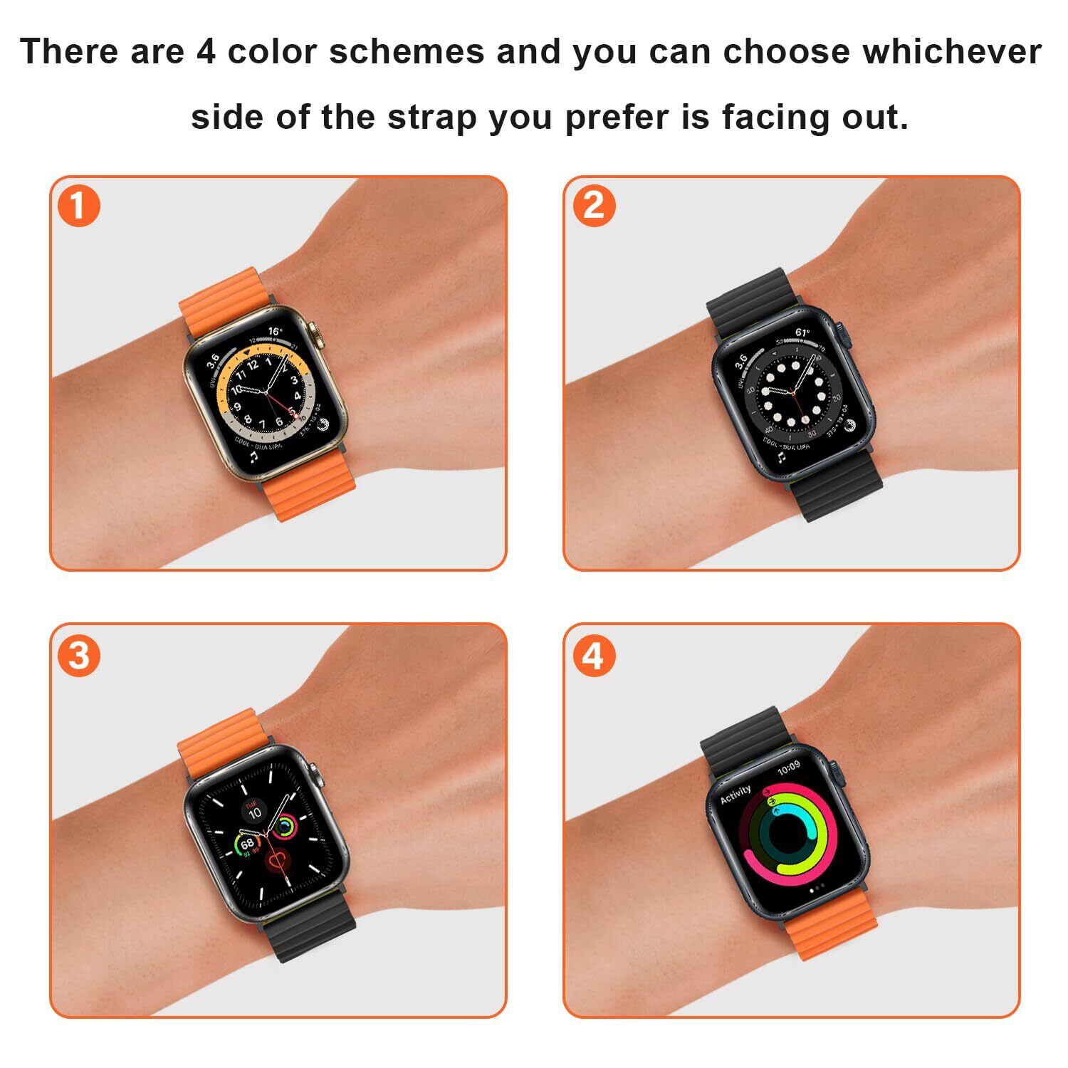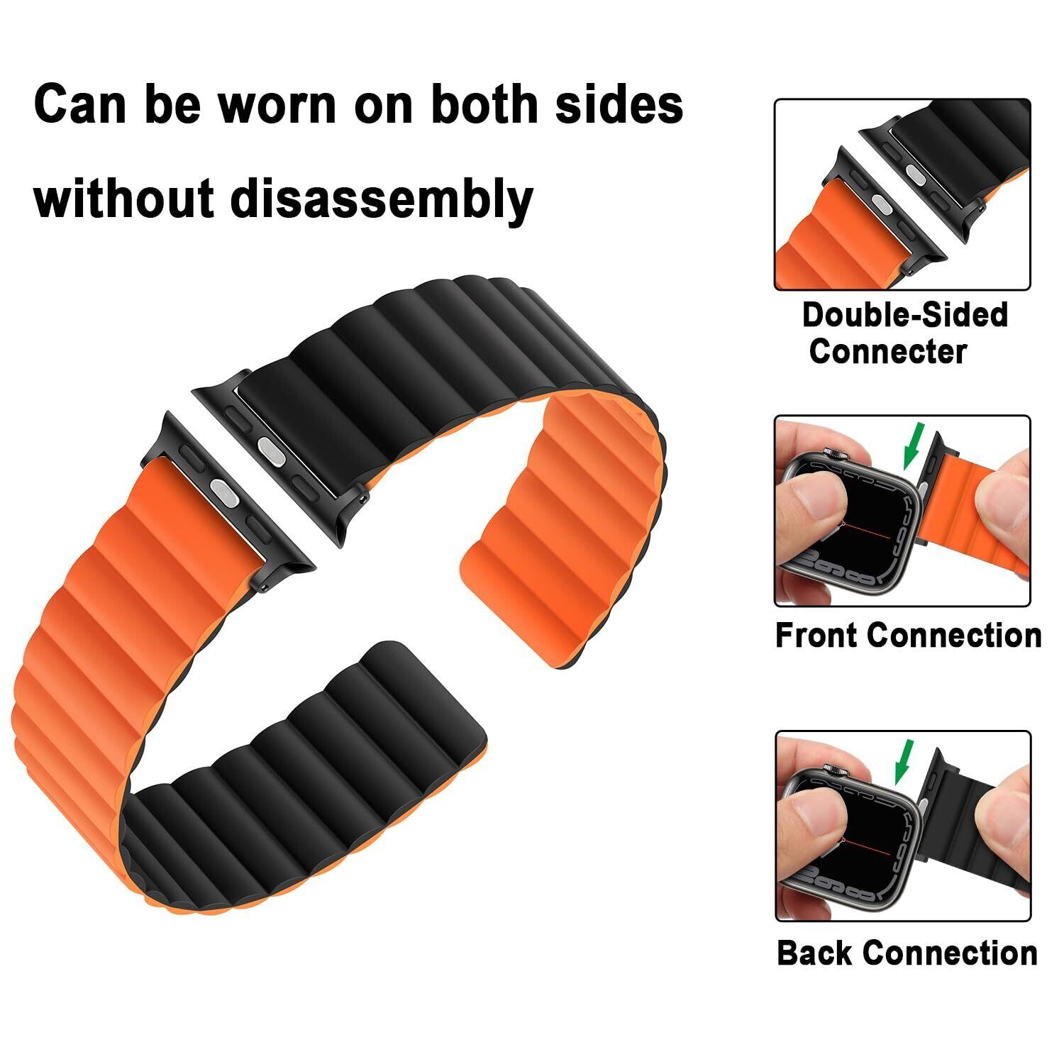 Anlinser コンパチブル Apple Watch バンド42mm 41mm 40mm 38mm、磁気両面リバーシブルアップルウォッチバンド シリーズ10/9/8/7/6/5/4/3/SE 用(ブラック/オレンジ)