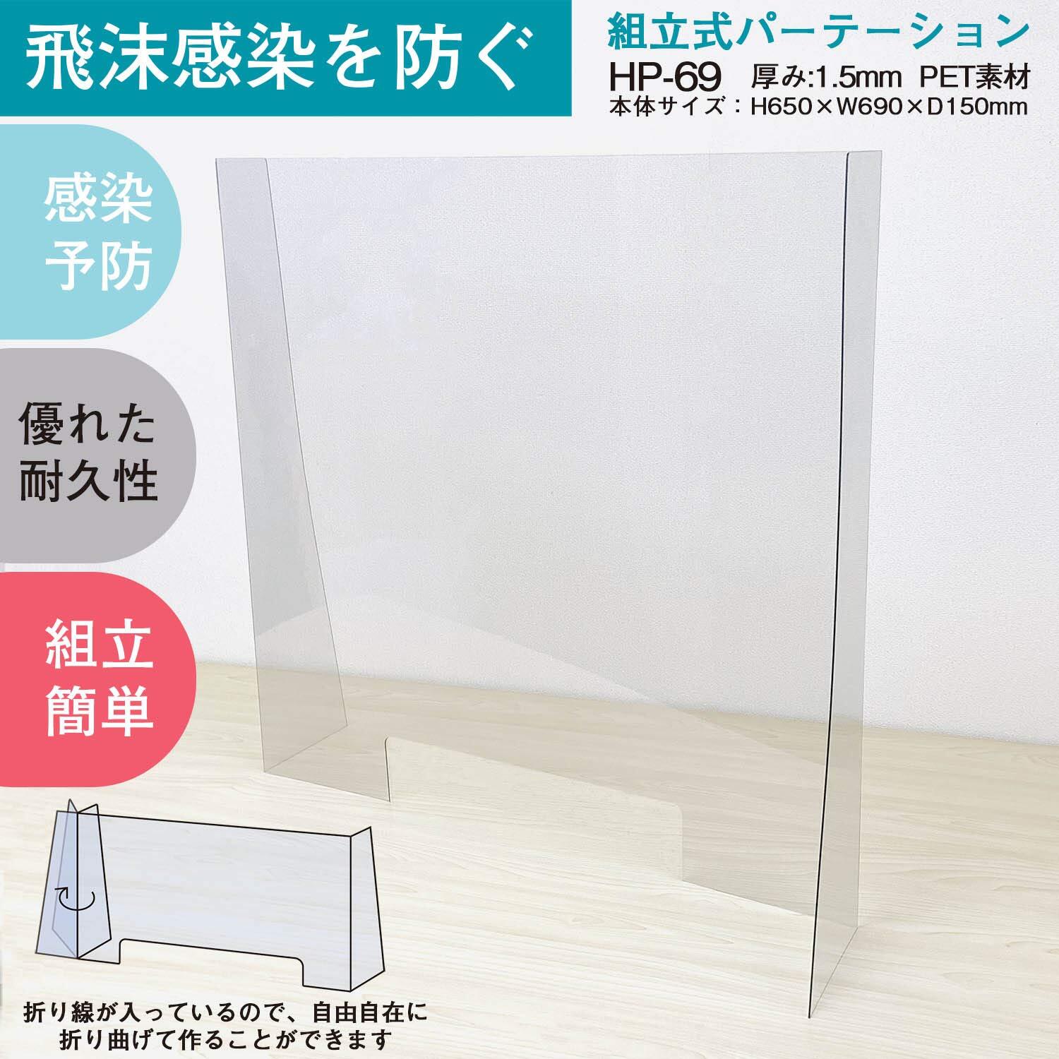 西敬 飛沫感染防止 パーテーション PET 折り曲げ組立式 W690×H650mm HP-69