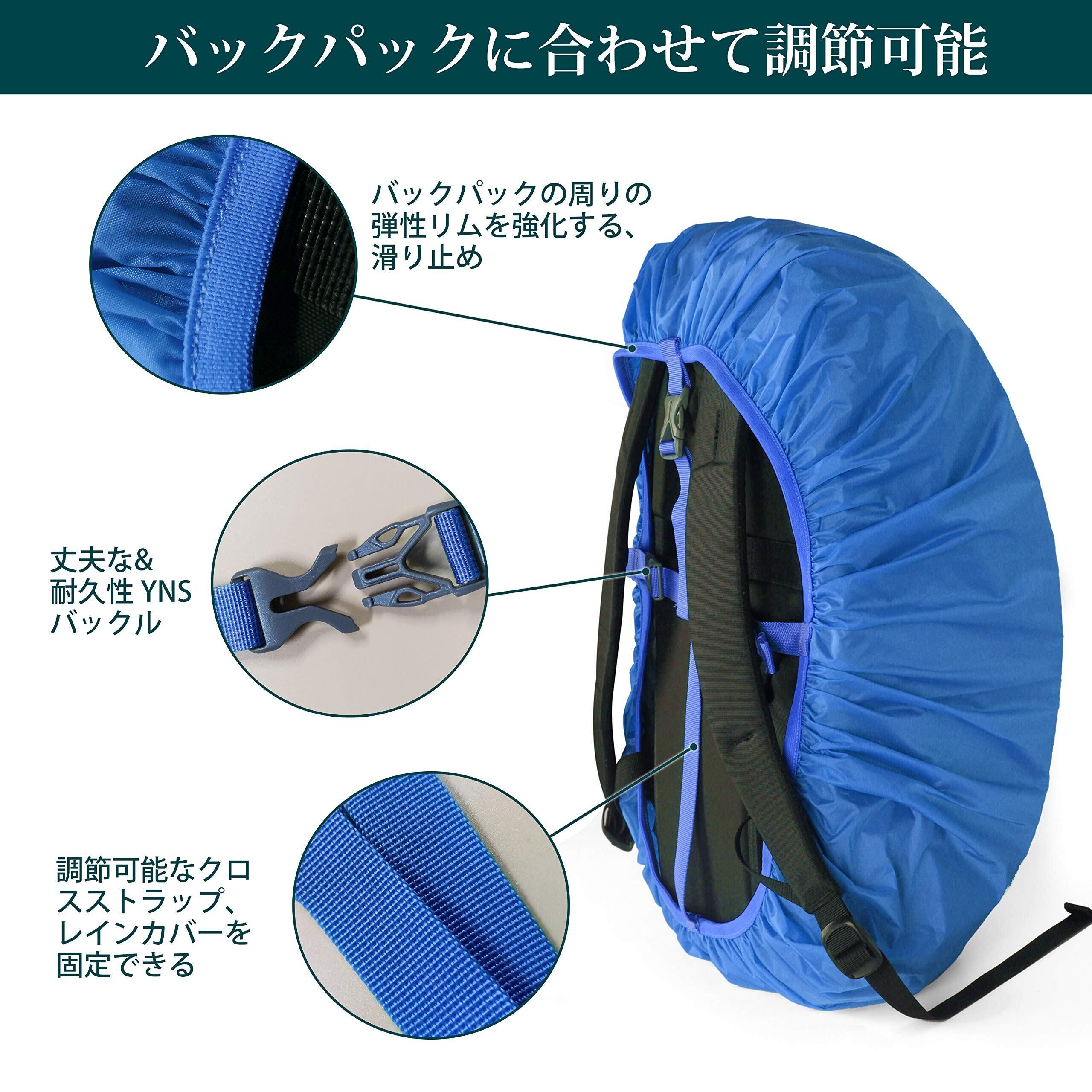 [Unigear] リュックカバー レインカバー 雨よけ ザックカバー 防水カバー 2倍以上の防水 耐水压5000mm 夜間反射 アウトドア 通勤 通学 梅雨対策 収納袋一体化 超軽量 5カラー 5サイズ 15L-80L