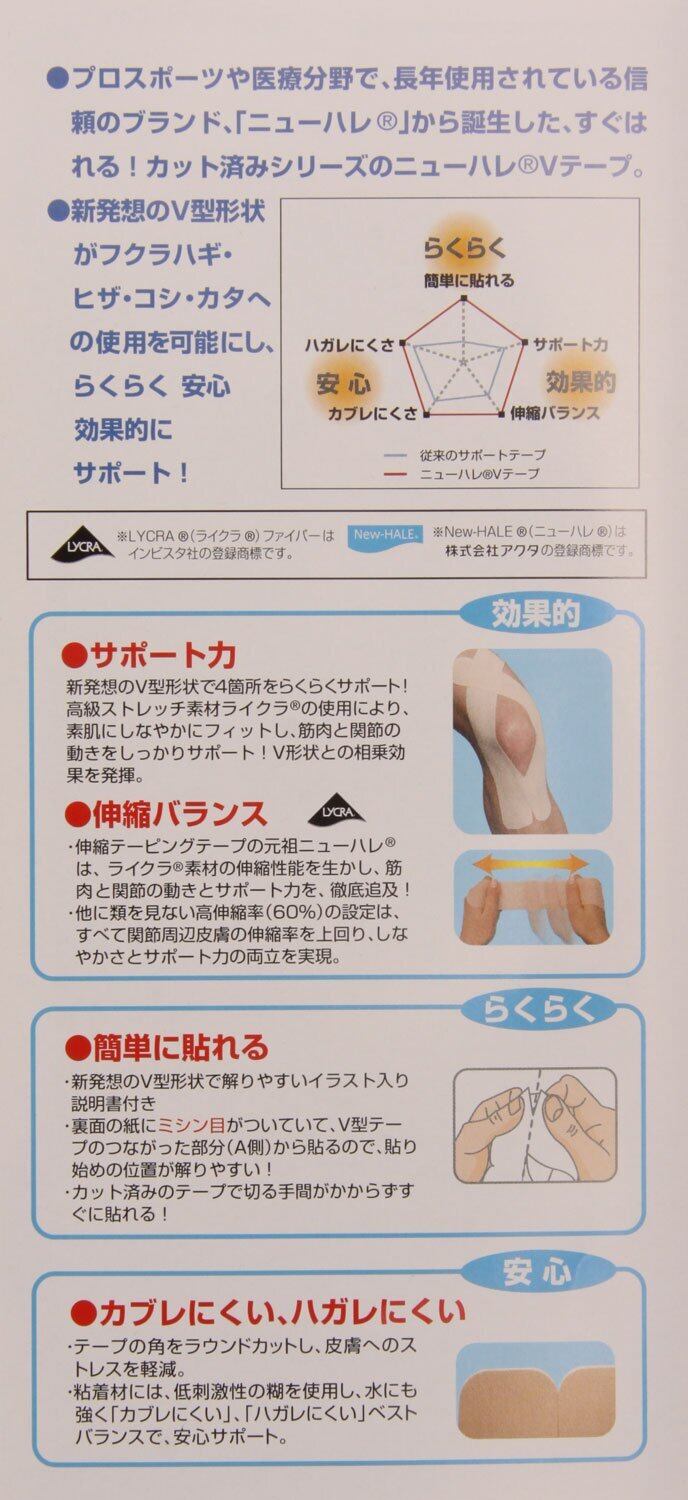 NewHALE(ニューハレ) テーピングテープ すぐ貼れるシリーズ VTAPE 腰 膝 ふくらはぎ 肩 10色展開