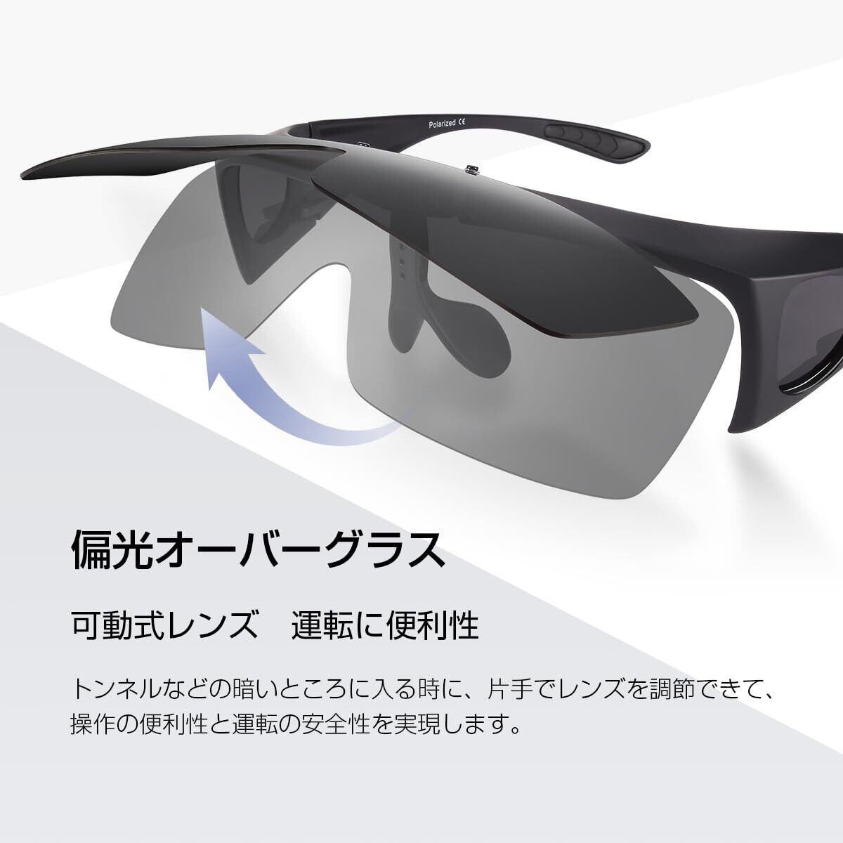 [Br'Guras] オーバーグラス 偏光サングラス メガネをかけたまま対応のサングラス 跳ね上げ式 UV400 紫外線カット サイクリング、釣り、ランニング、野球 格好いいサングラス