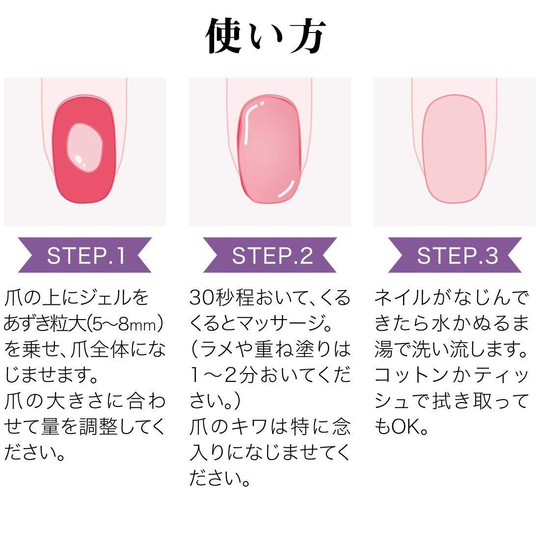 【 爪に優しい 】 ジェル状だからしっかり密着してきれいにネイルカラーをオフ。爪だけにピンポイントに塗れ、爪以外につかないので爪のきわがささくれになりにくい。少量でネイルオフできます。
