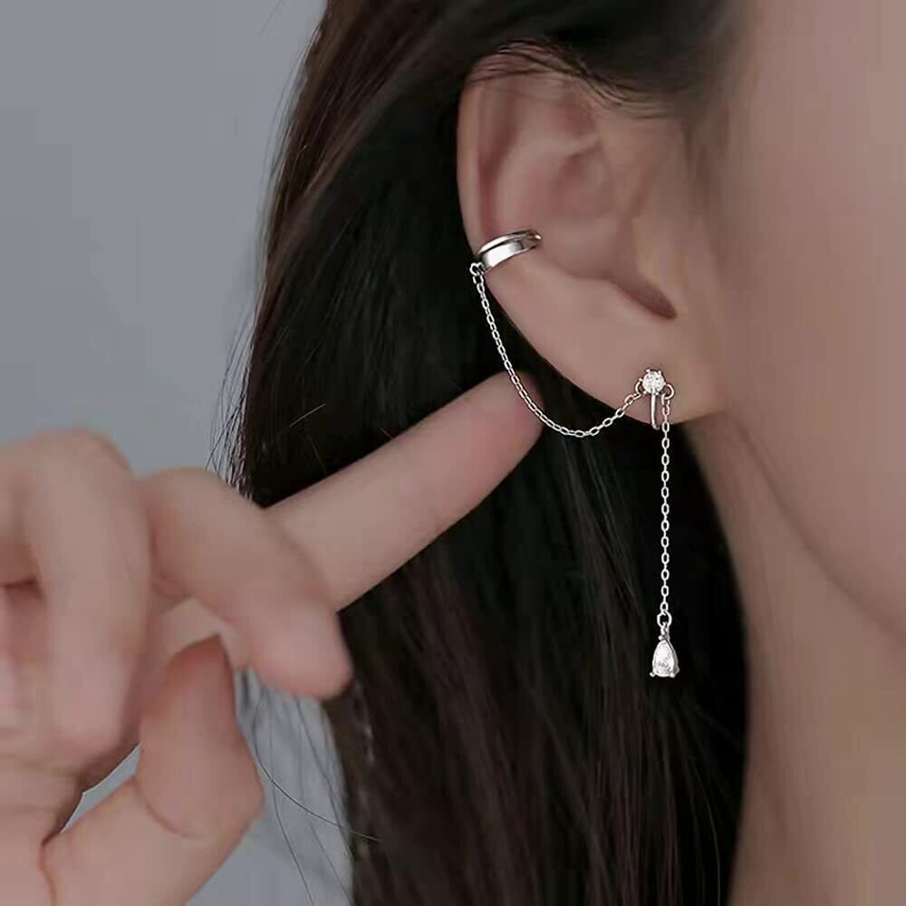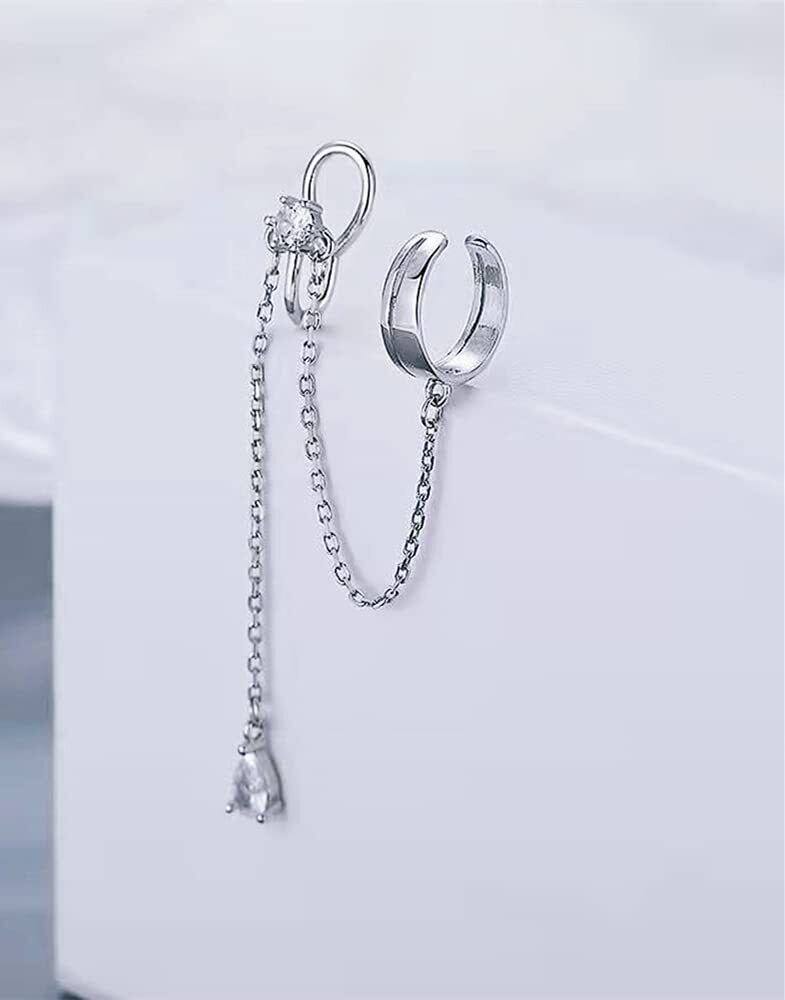 【 人気のデザイン 】片耳用たれさがりイヤーカフチェーン。まるで本物のピアスの様に見えるので、仕事でピアスができない方・穴を開けるのに迷っている方・まだ穴を開けていない学生さんへもオススメです。