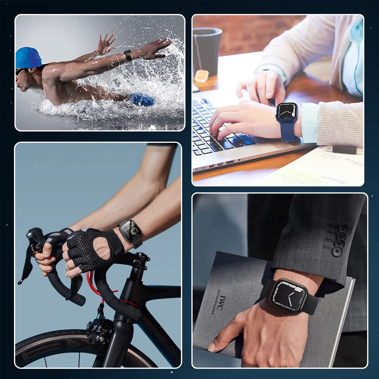 【防水・防塵ケース】apple watchカバーの防水機能は全面的にアップグレードされました。新型保護ケースでは、スクリーンの強化ガラスフィルムの下部に防水ソフトラバーシーリングリングが内蔵されており、水がガラスフィルムと本体の間に入るのを効果的に防ぎ、日常使用中に水に触れることで生じる画面タップ問題を回避し、日常のスポーツや水上活動に最適です。