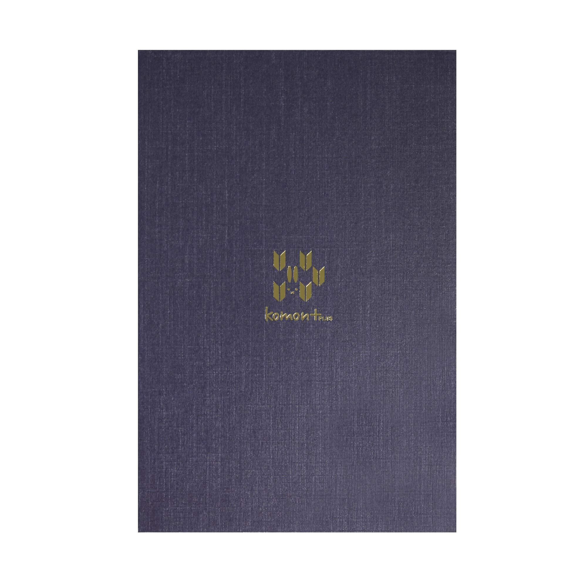 【材質:紙表紙(PP貼り)、伊予奉書紙(国産和紙)】中紙は伊予の国産和紙で折られており、古くから続く日本伝統の製法で職人が1冊1冊を手作りでつくっています。中紙は墨を吸い、裏写りしにくい伊予の奉書紙を使用し2枚重ねのジャバラ折りになっています。