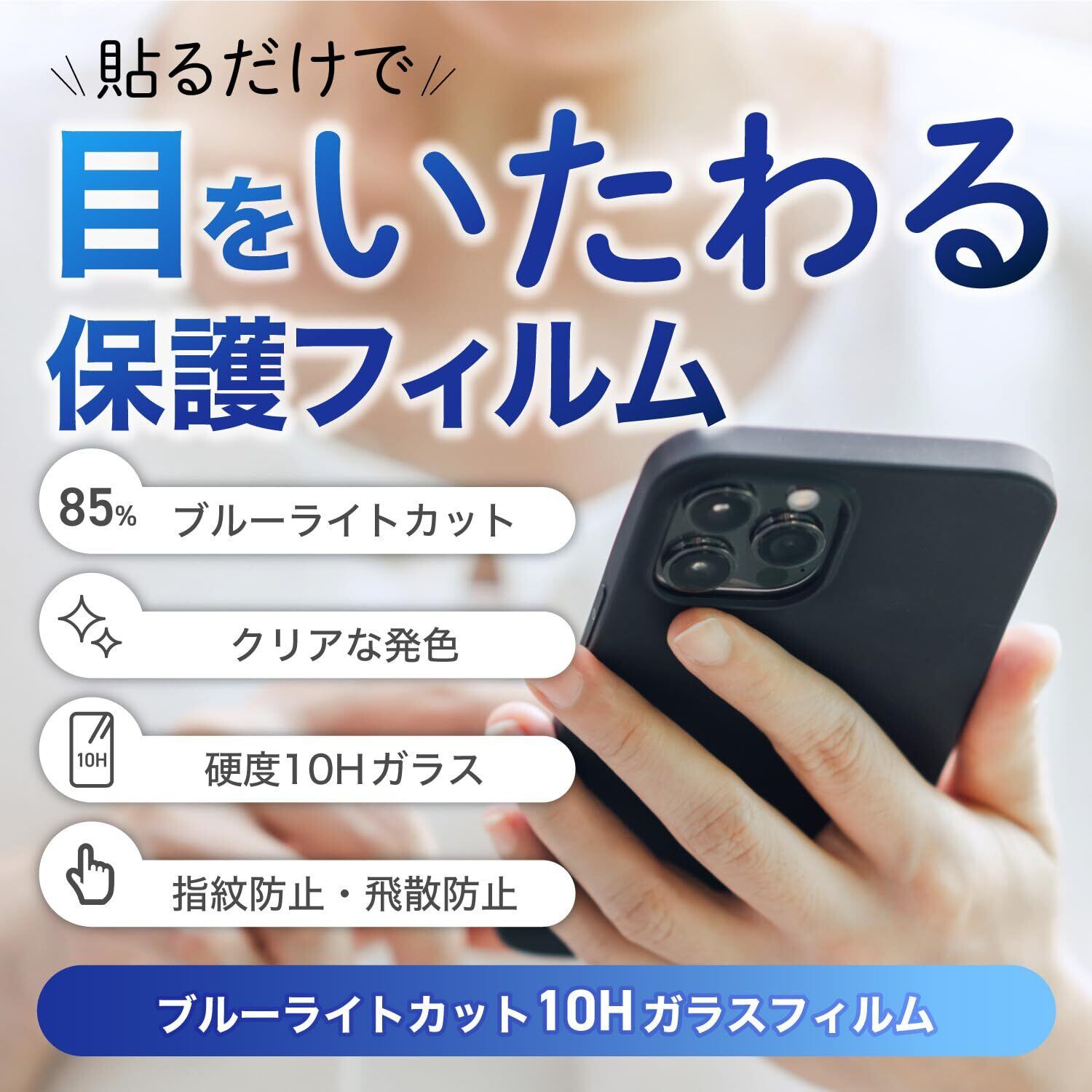 特徴 硬度10H, 貼り直し可能, ブルーライトカット, 指紋防止