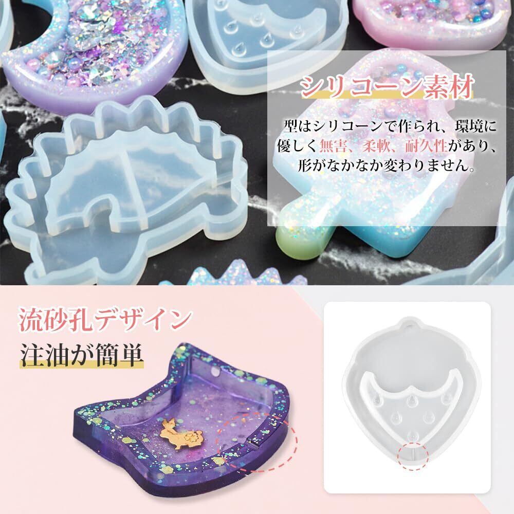YFFSFDC シリコンモールド 流砂型 12個セット 小動物 ハート アイスクリーム シェイカーモールド ソフトモールド DIY手作り かわいい ペンダント アクセサリー 装飾 再利用可能