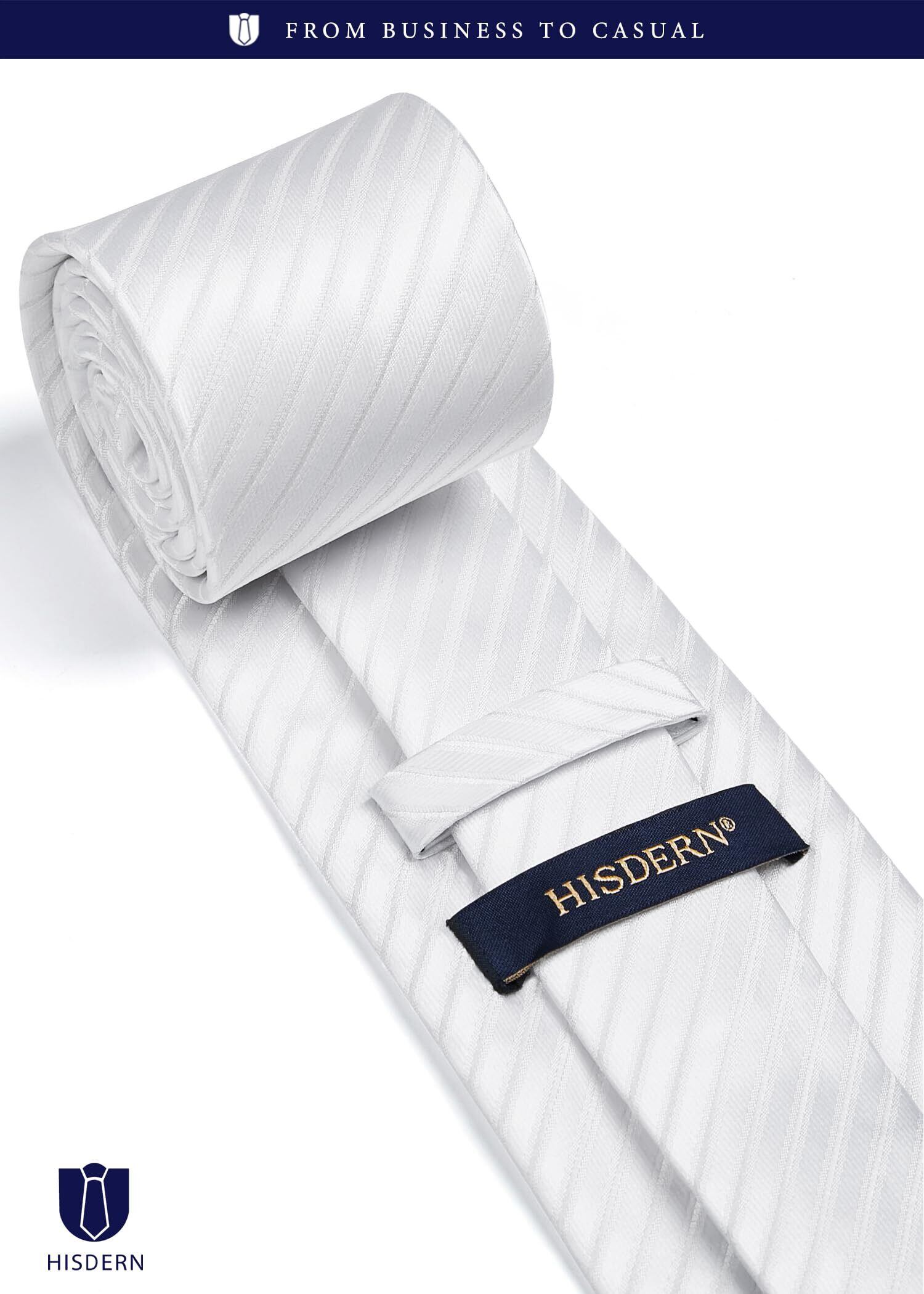 【3点セット】ネクタイ1本 + ポケットチーフ1本 + ネクタイピン1本 、HISDERNブランド専用ボックスが付き 商品サイズ:ネクタイ 幅8.5cm / 長さ150cm | ポケットチーフ: 31cm*31cm | ネクタイピン:5.8cm × 0.6cm。