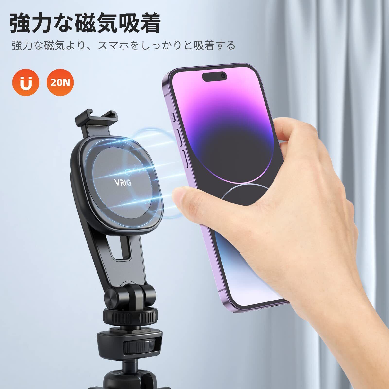 VRIG MG-03 スマホホルダー 三脚 スマホ 三脚 マグネット magsafe対応三脚 三脚 スマホホルダー カメラ スマホホルダー スマホホルダー カメラ 片手操作 超強力磁力 360度回転 コールドシュー付き スマートフォン三脚マウント1/4インチネジ穴 16/15/14/13/12/11/10/9/8/7/Android/三脚/カメラ対応