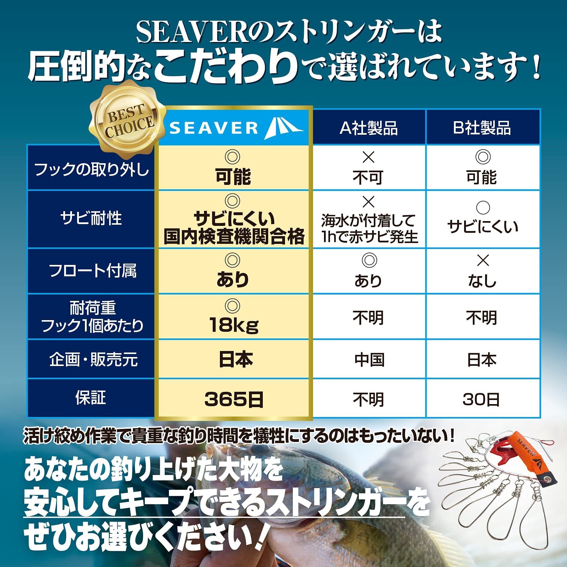 【特価セール】【フックが取り外せる】フロート付きストリンガー サビにくい バネ式フック 5 / 10個 ワイヤー 5 / 10m スペアフック 収納ケース 付き SEAVER(シーバー)