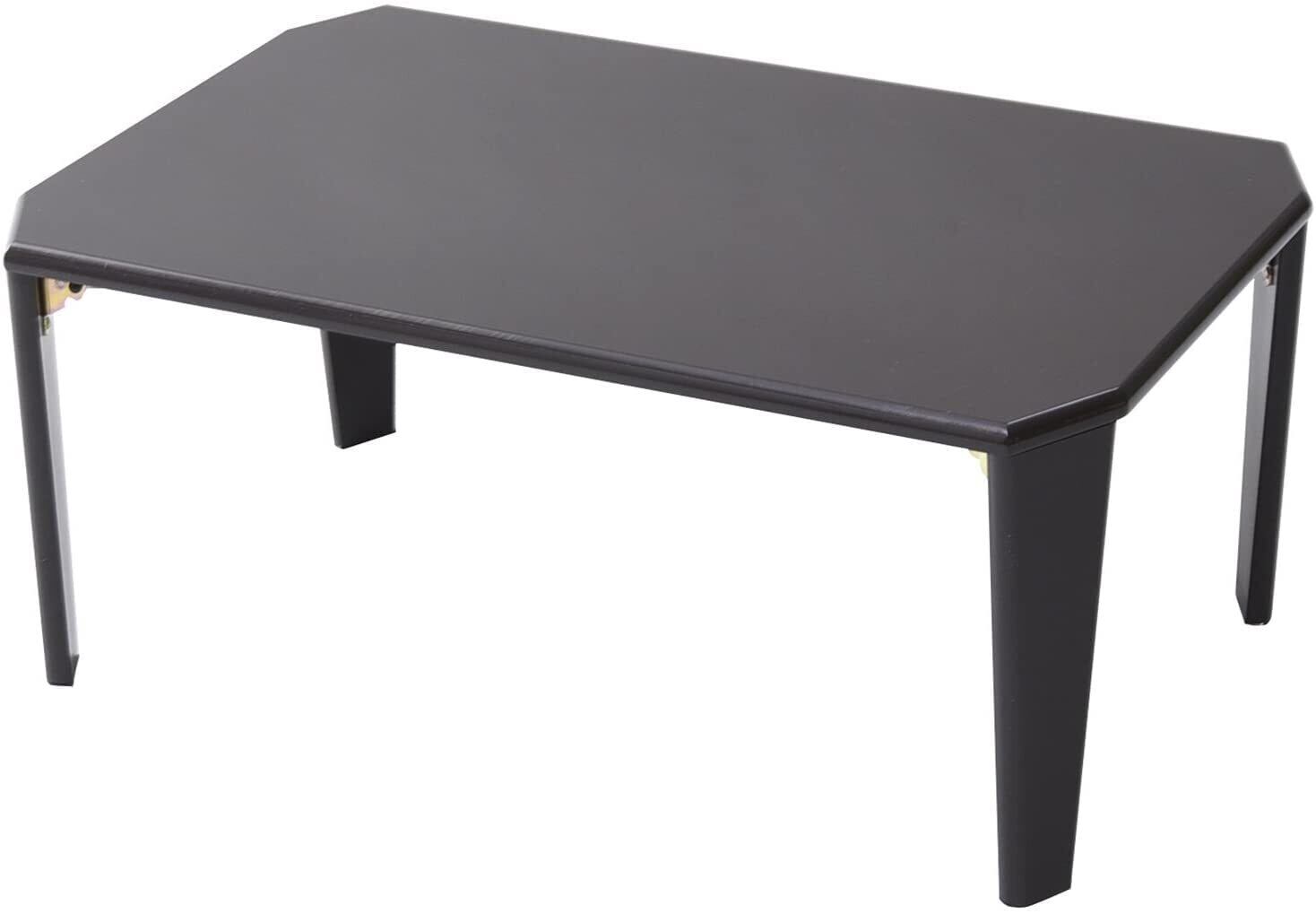 山善(YAMAZEN) ローテーブル 折りたたみ 幅75×奥行50×高さ32.5cm 鏡面 コンパクト収納 角が丸い テーブル 折れ脚 完成品 ダークブラウン TWL-7550(DBR)