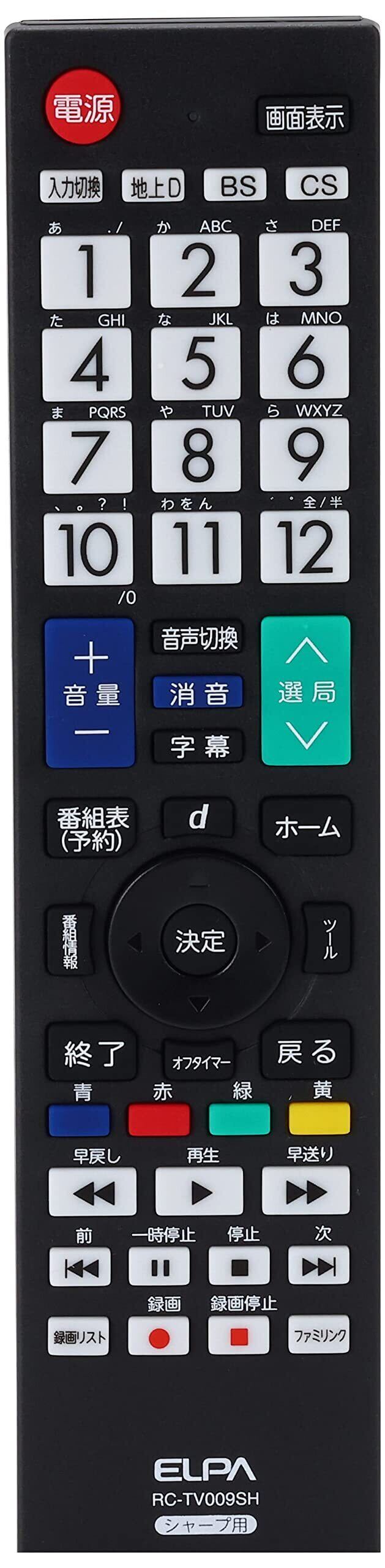 エルパ (ELPA) テレビリモコンシャープ 動作距離:約7m 電池持続時間約12ヶ月 RC-TV009SH