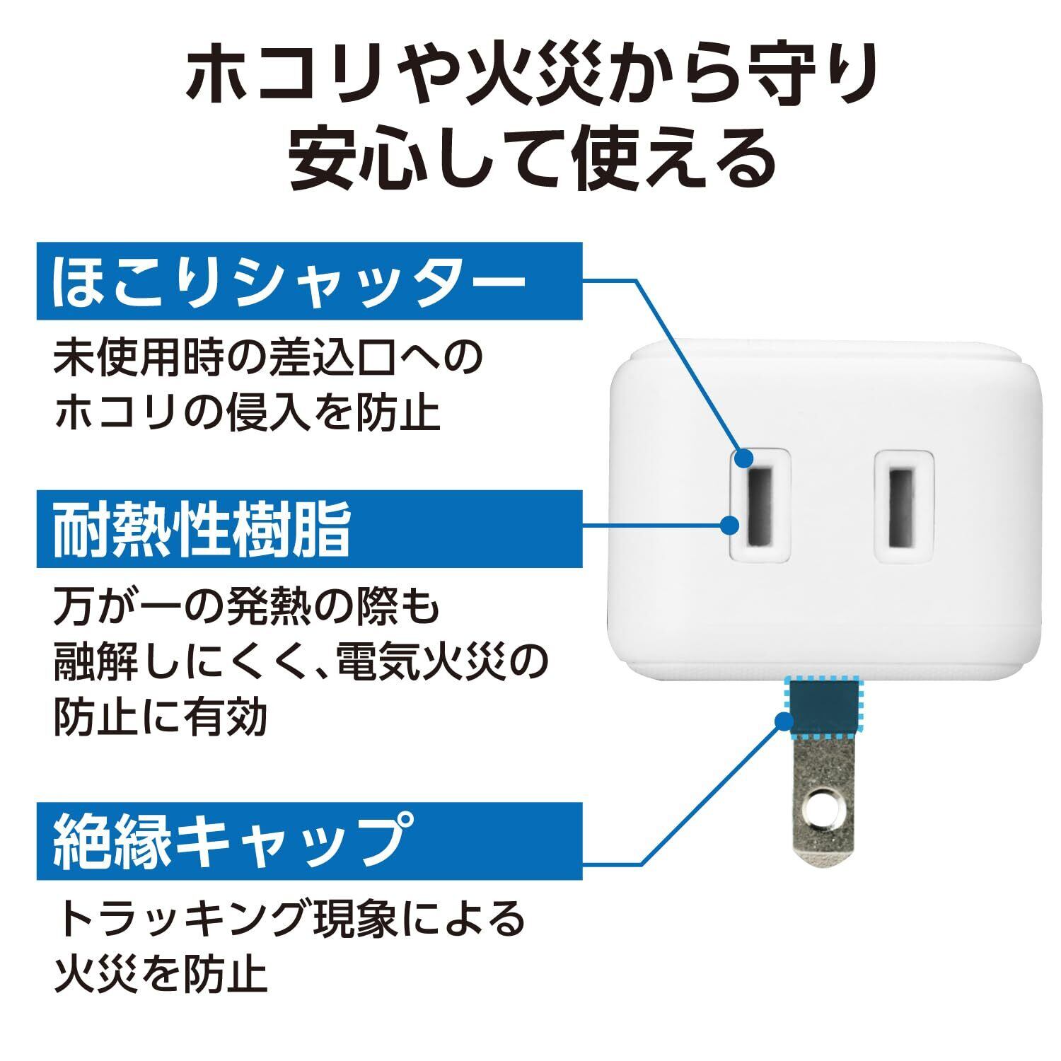 エレコム 電源タップ USBタップ 2.4A (USBポート×3 コンセント×2) 直挿し ホワイト ECT-03WH