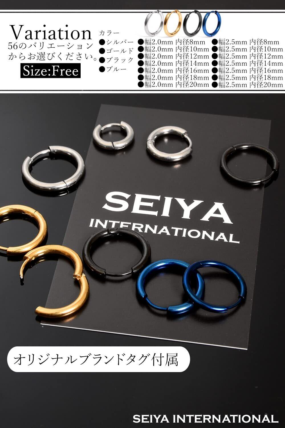 [SEIYA INTERNATIONAL] フープピアス リングピアス ピアス メンズ レディース ステンレス 18G 両耳 2個セット