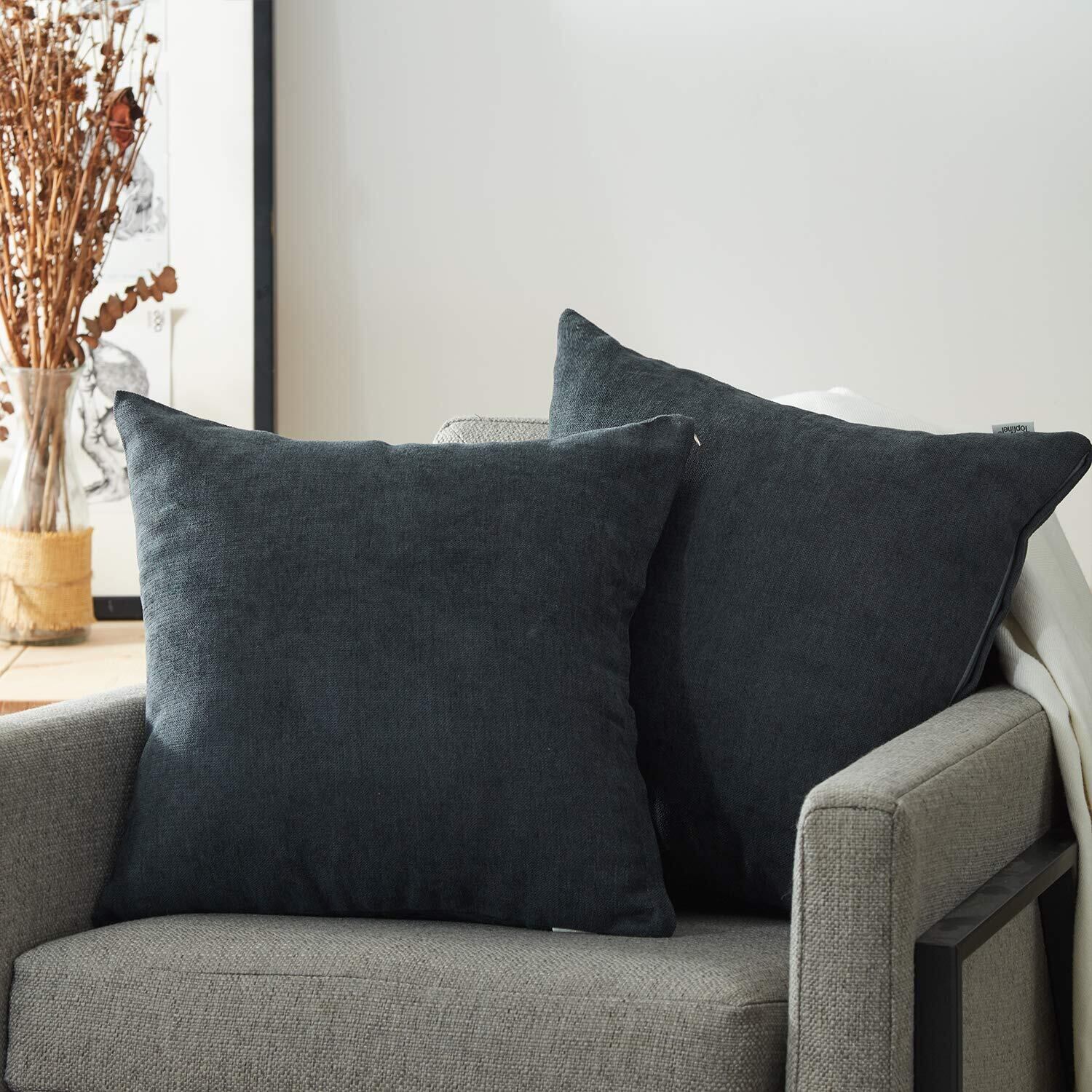 【新着商品】Topfinel クッションカバー リネンっぽい 45×45cm 北欧 おしゃれ 綿麻 無地 ソファ背当て 装飾枕カバー 座布団カバー 濃いグレー 2枚セット(全10色)