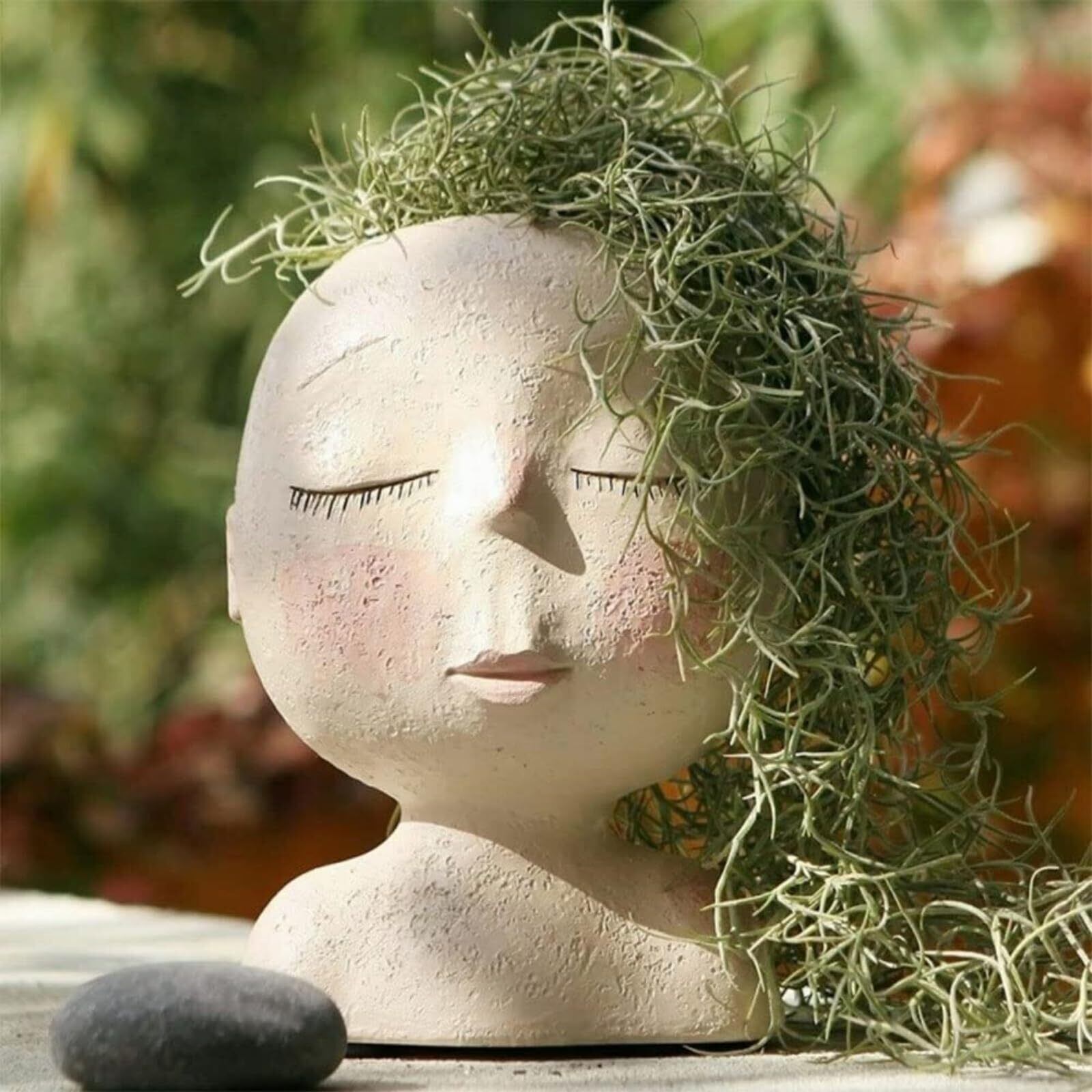 【数量限定】ヘッドプランター 植木鉢 顔 フェイスプランターポット 可愛い女子の顔プランター 萌えフラワーポット フェイスプランターポット 花瓶 観葉植物の鉢 フェイス花器 樹脂 サボテンプランタ 屋内外植物用 水抜き穴付き (閉じた目)